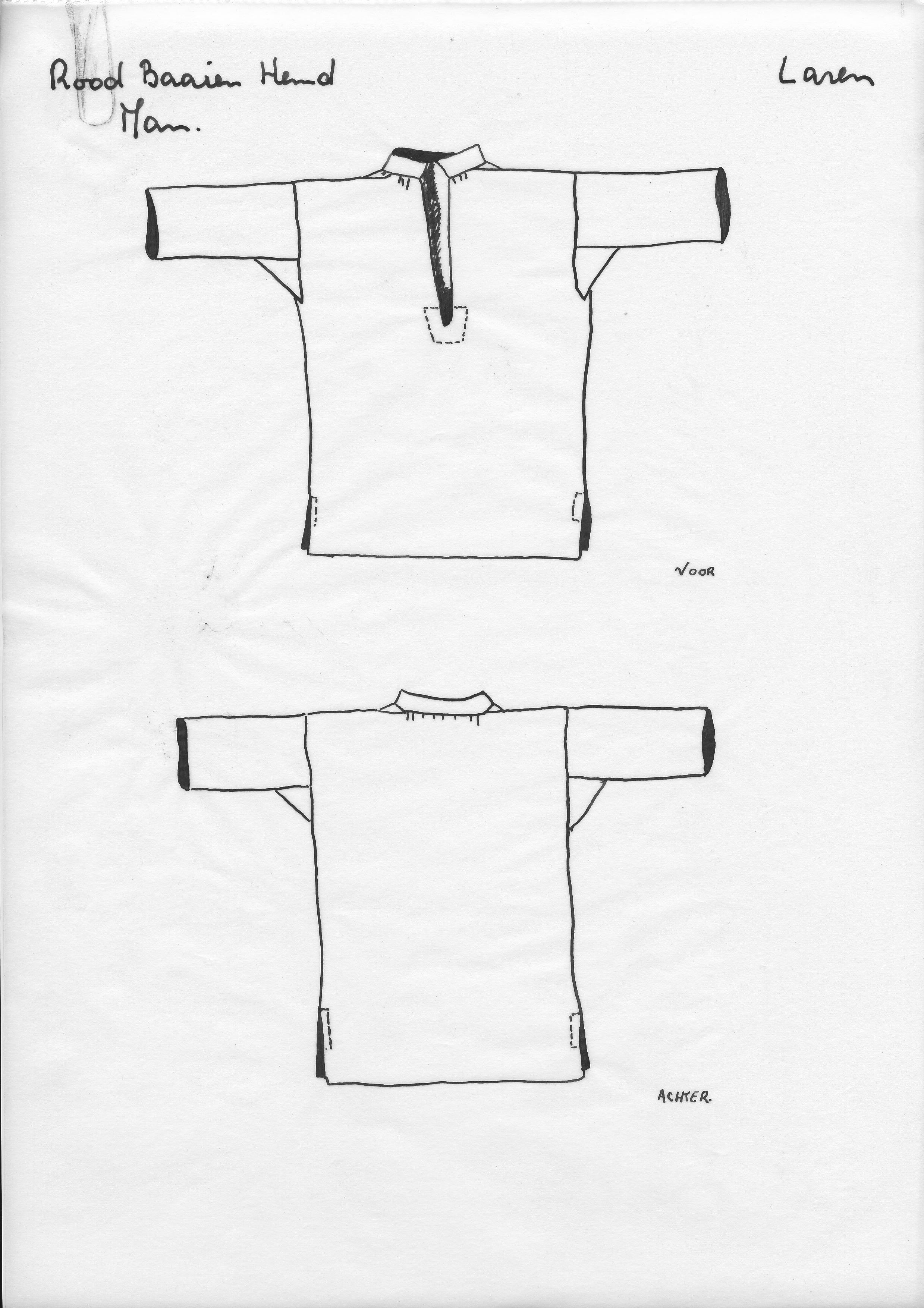Tekening van een rood baaien hemd, Laren (opmetingst...