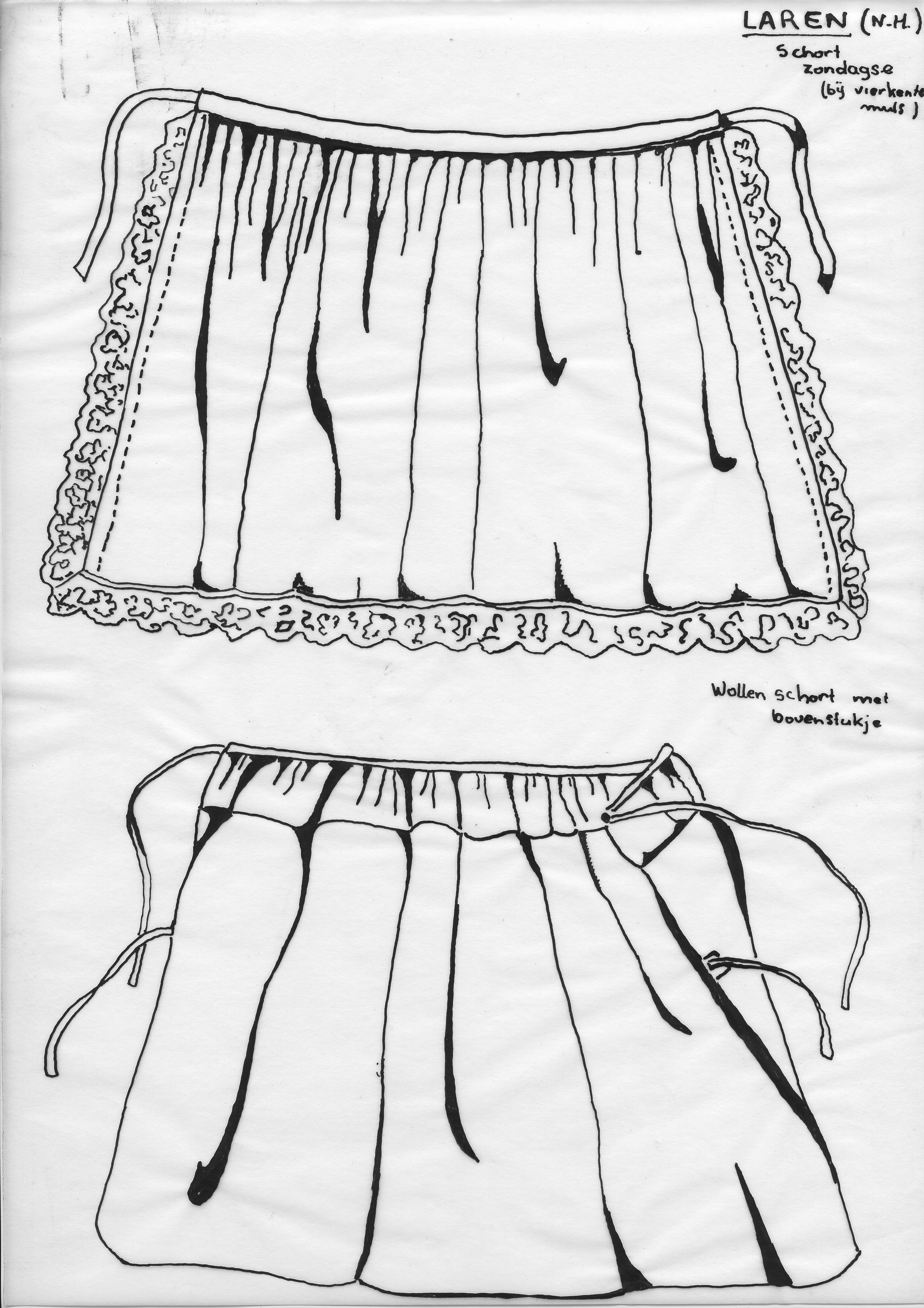 Tekening van een zondagse schort en wollen schort, L...