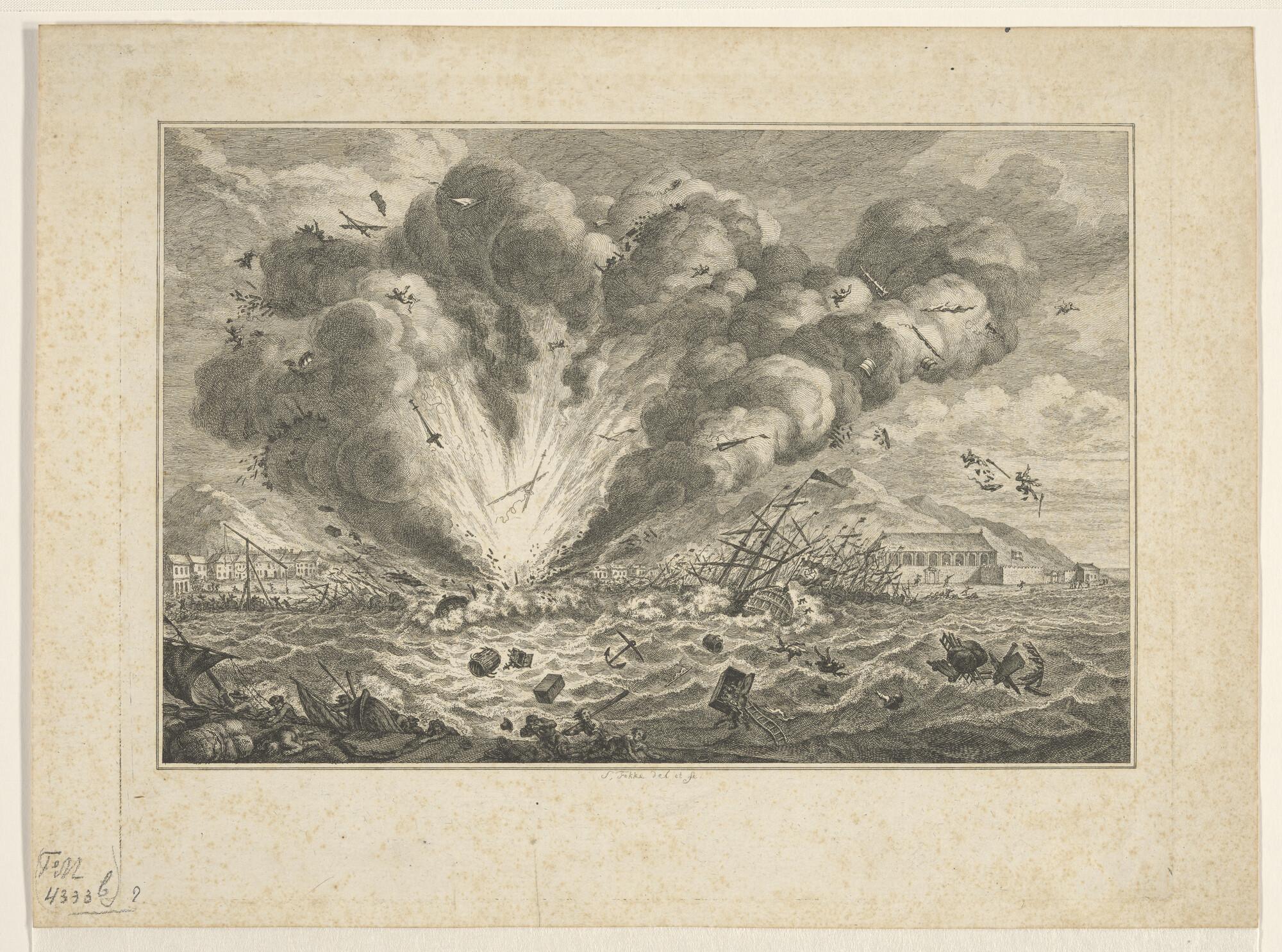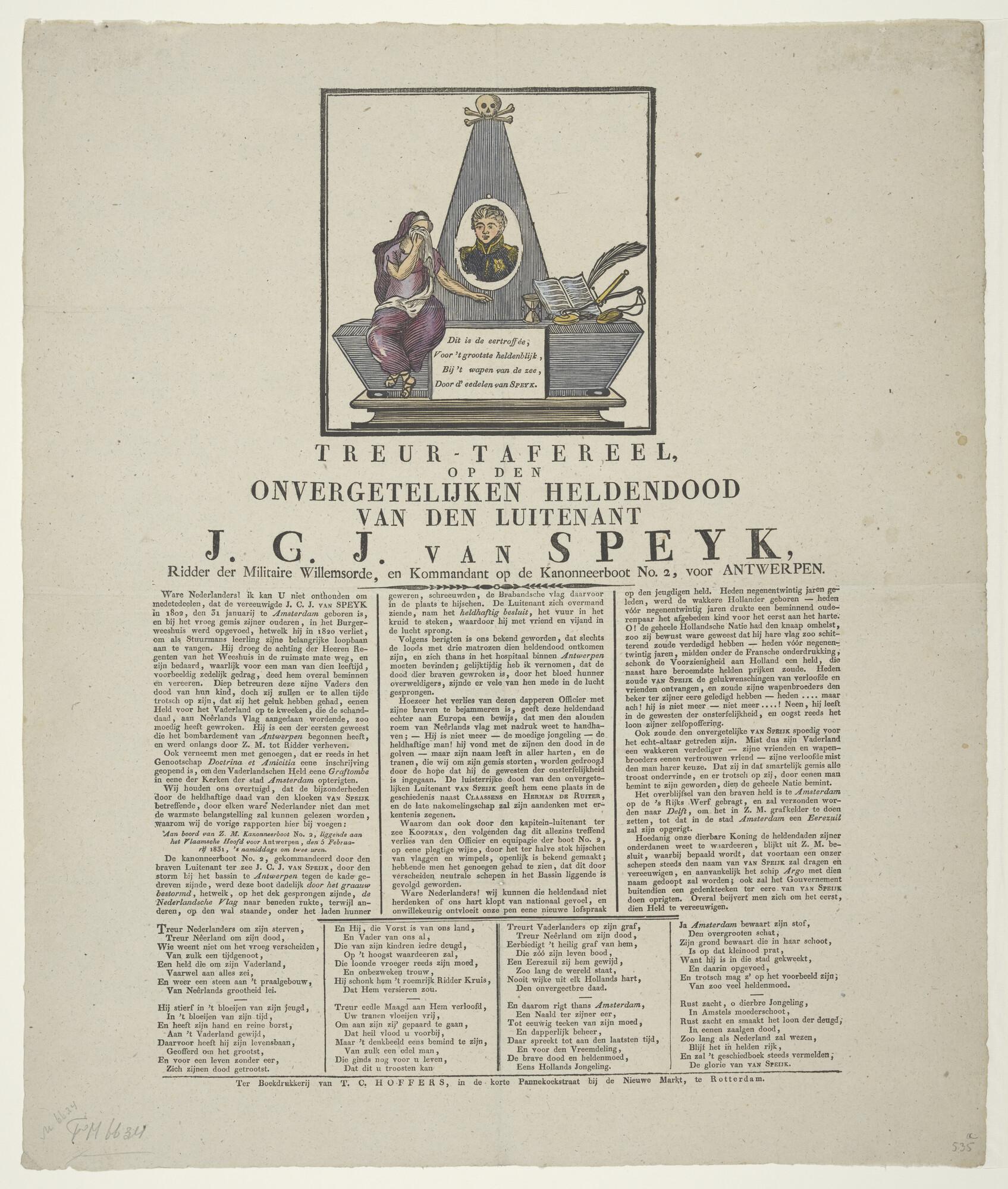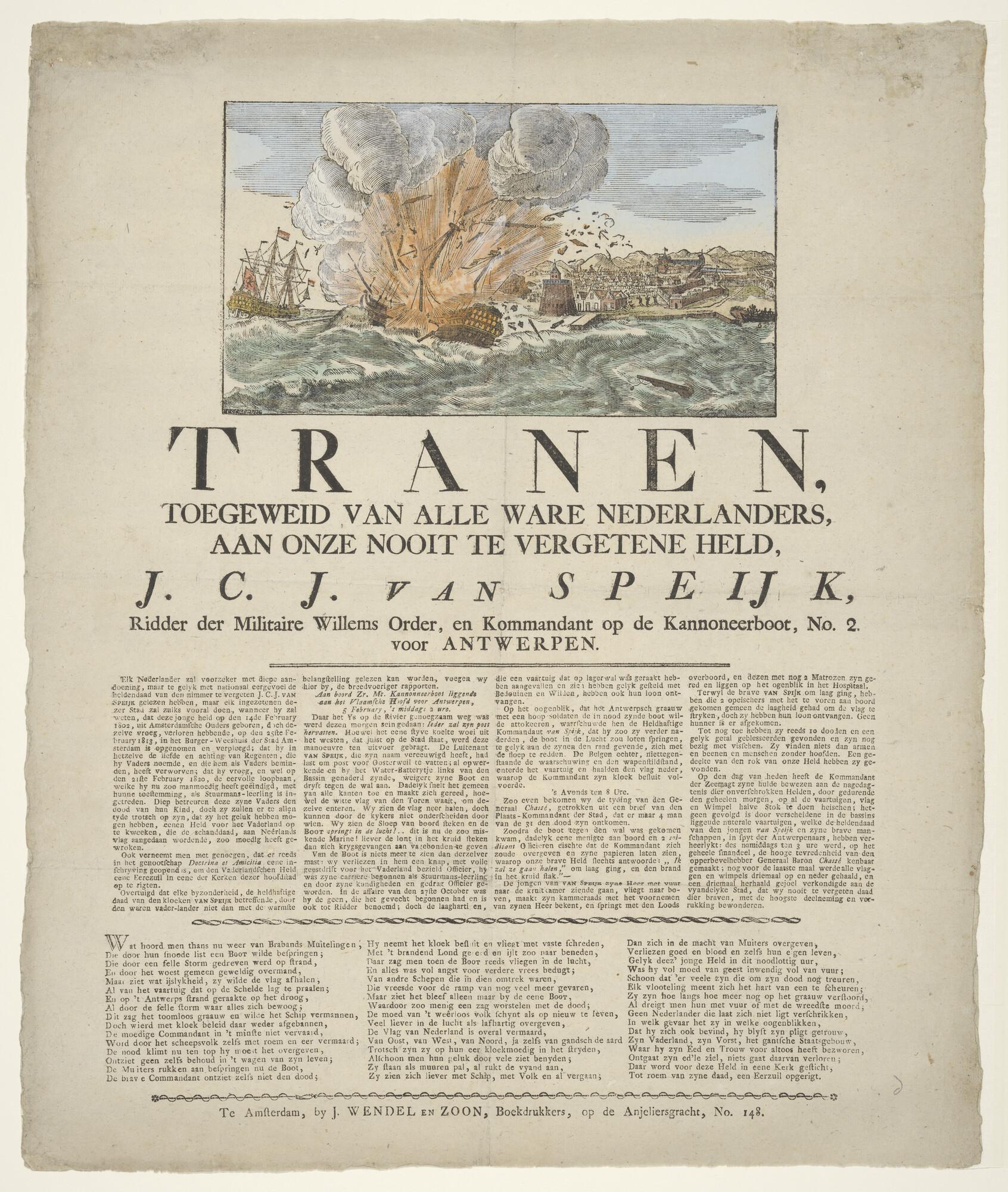 Portret van Van Speyk en de ontploffing van zijn schip