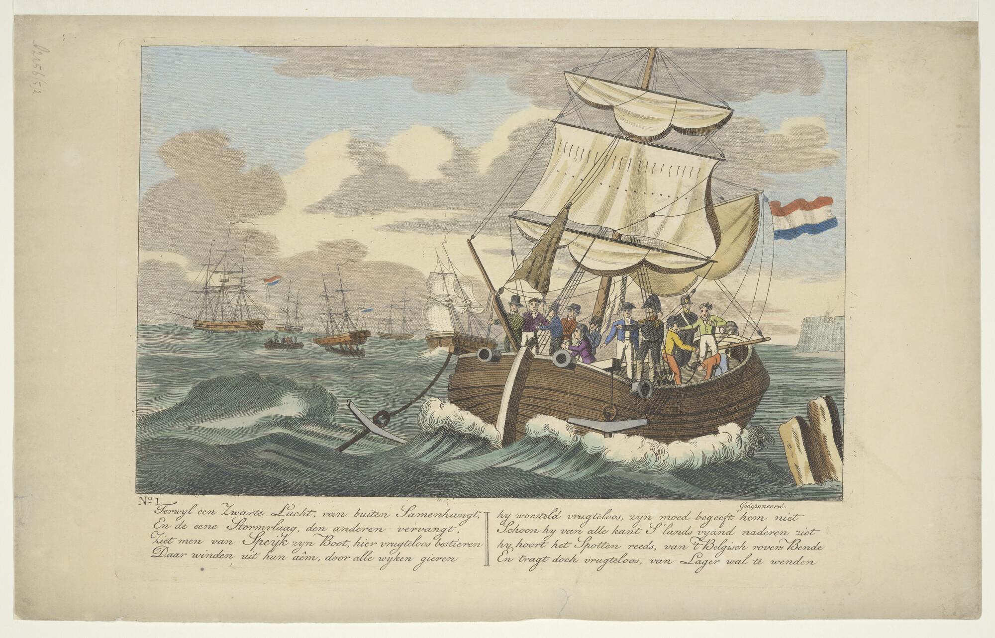 Het aan de wal raken van het schip van Van Speyk op ...