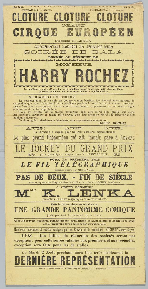 Grand Cirque Européen. Direction K. Lenka. Soirée de...