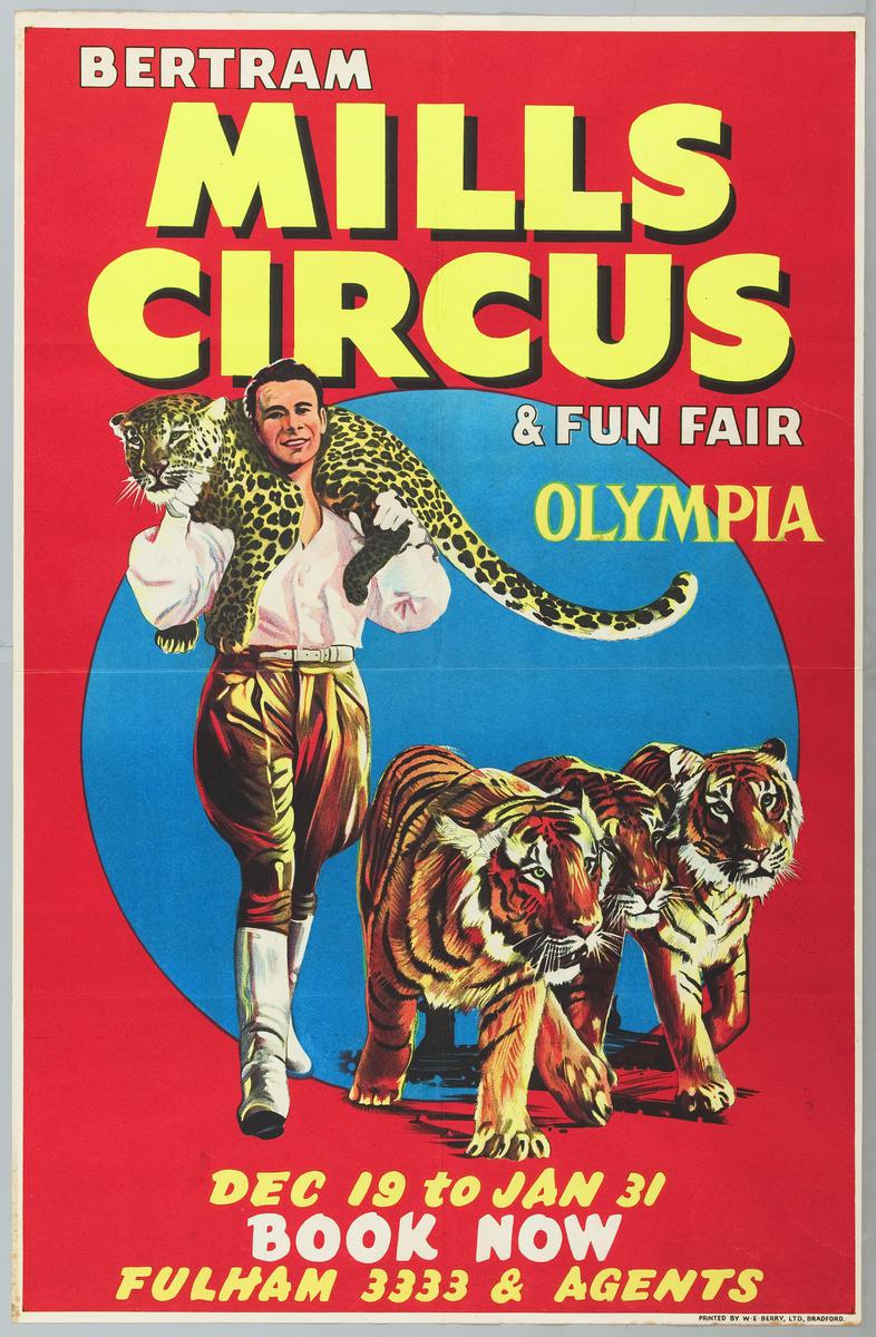 Bertram Mills Circus - dompteur met tijgers en panter