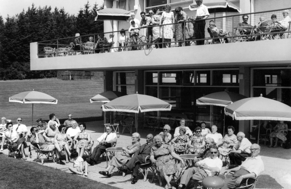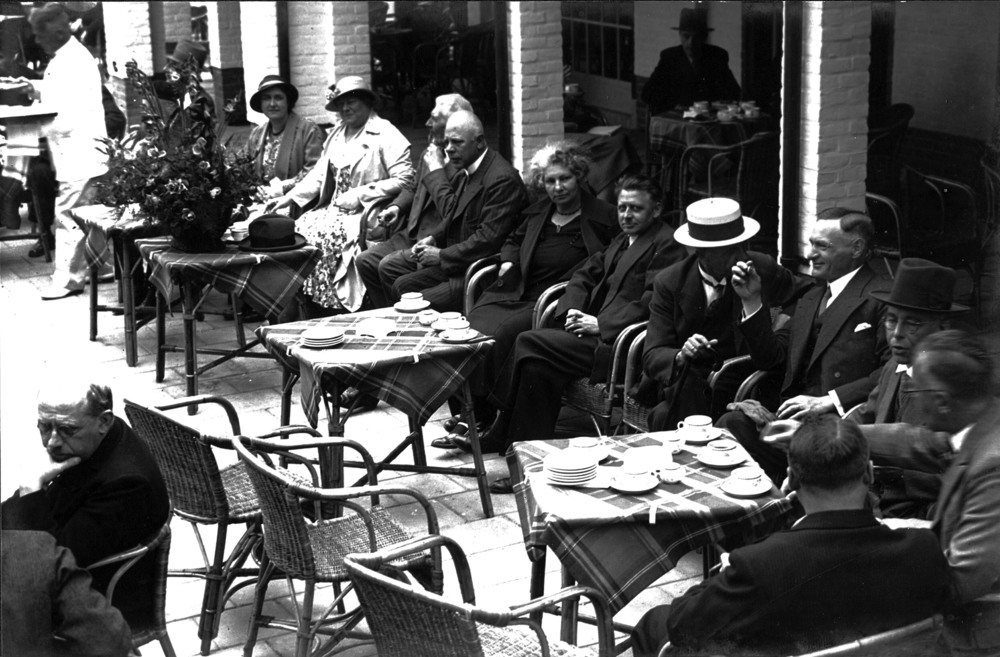 Publiek op het terras van het restaurant van het Bos...