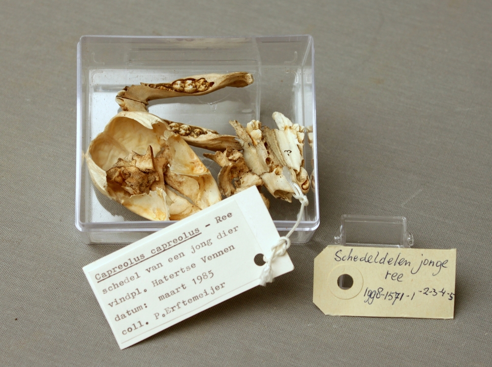 Ree; juveniel; 5 skeletdelen; in doosje