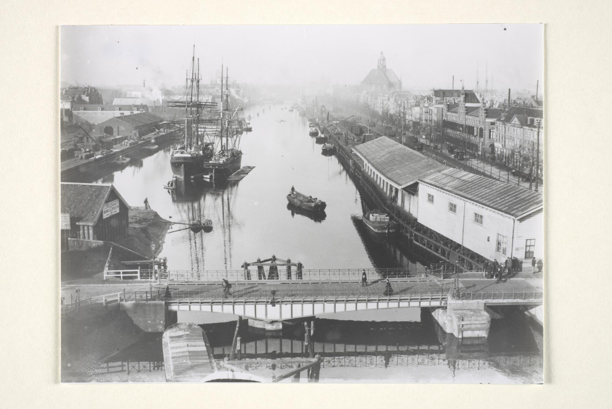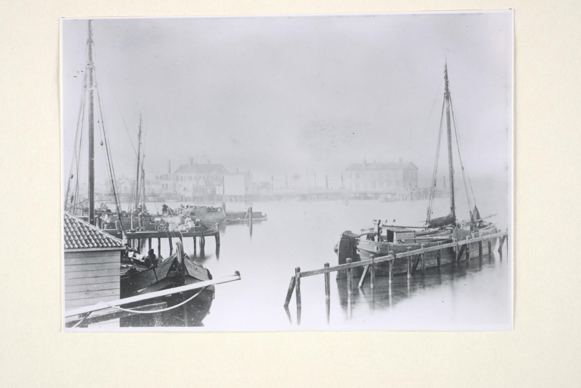 Gezicht op het IJ ter hoogte van het Damrak met onde...