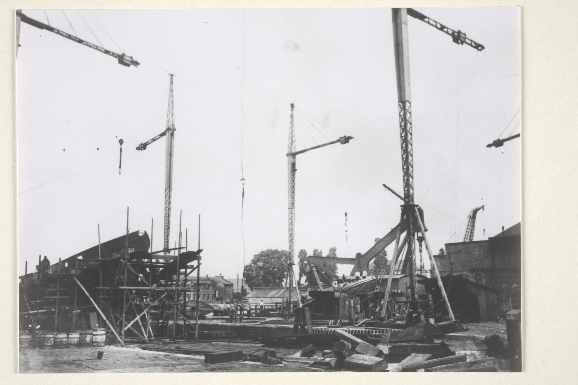 Scheepsbouw op de hellingen van de Rijkswerf in Amst...