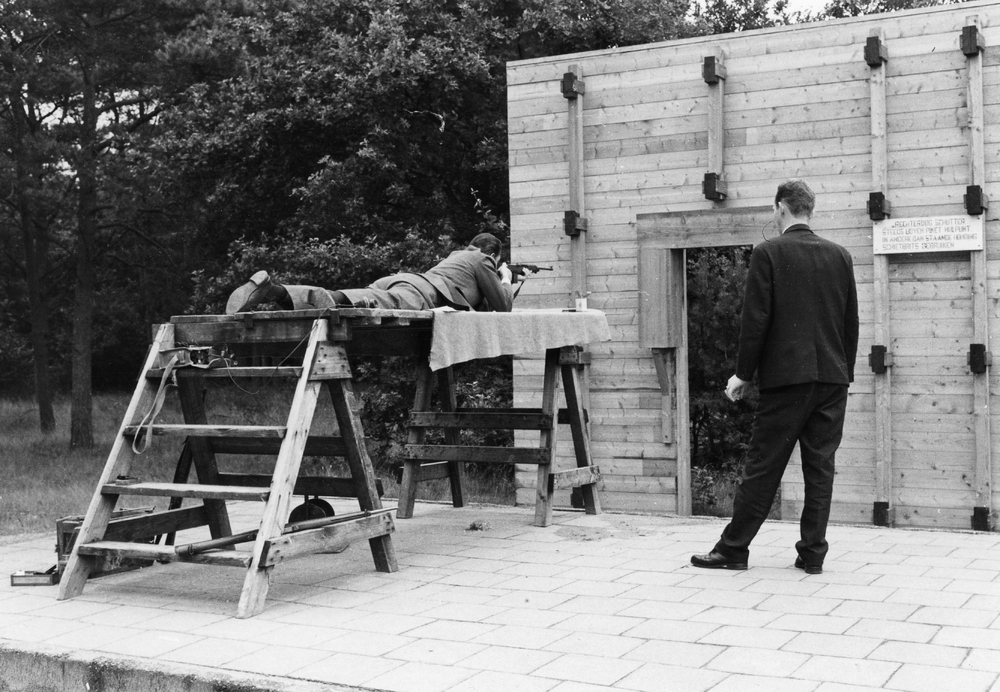 Karabijnschieten door personeel van de gemeentepolit...
