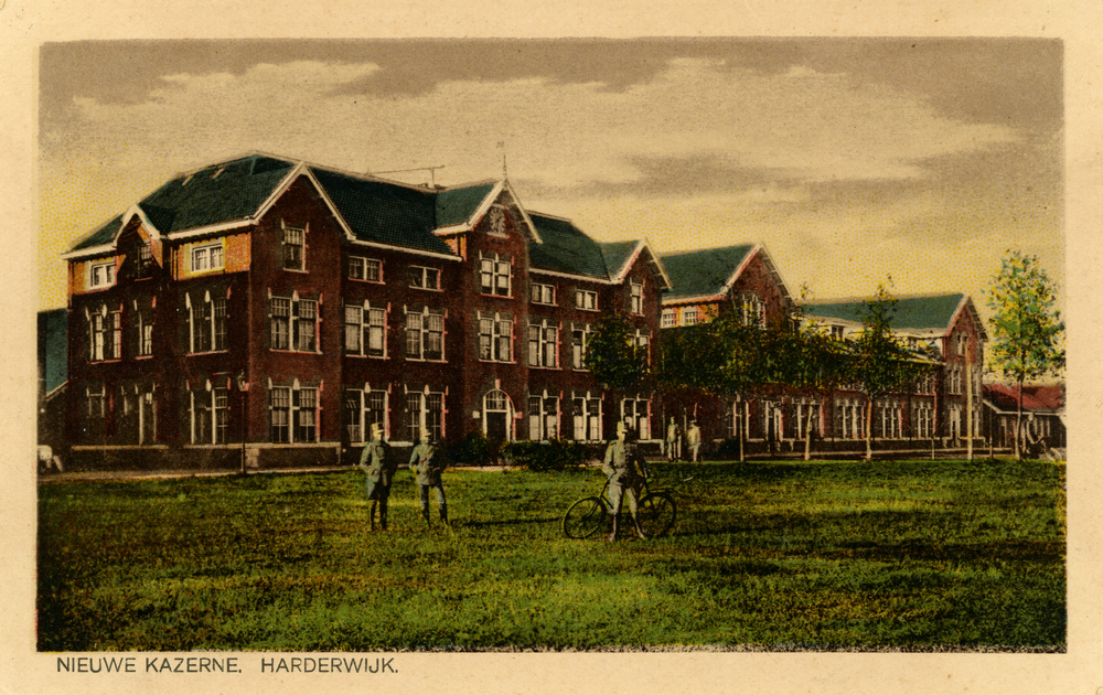 Prentbriefkaart, getiteld 'Nieuwe Kazerne Harderwijk'