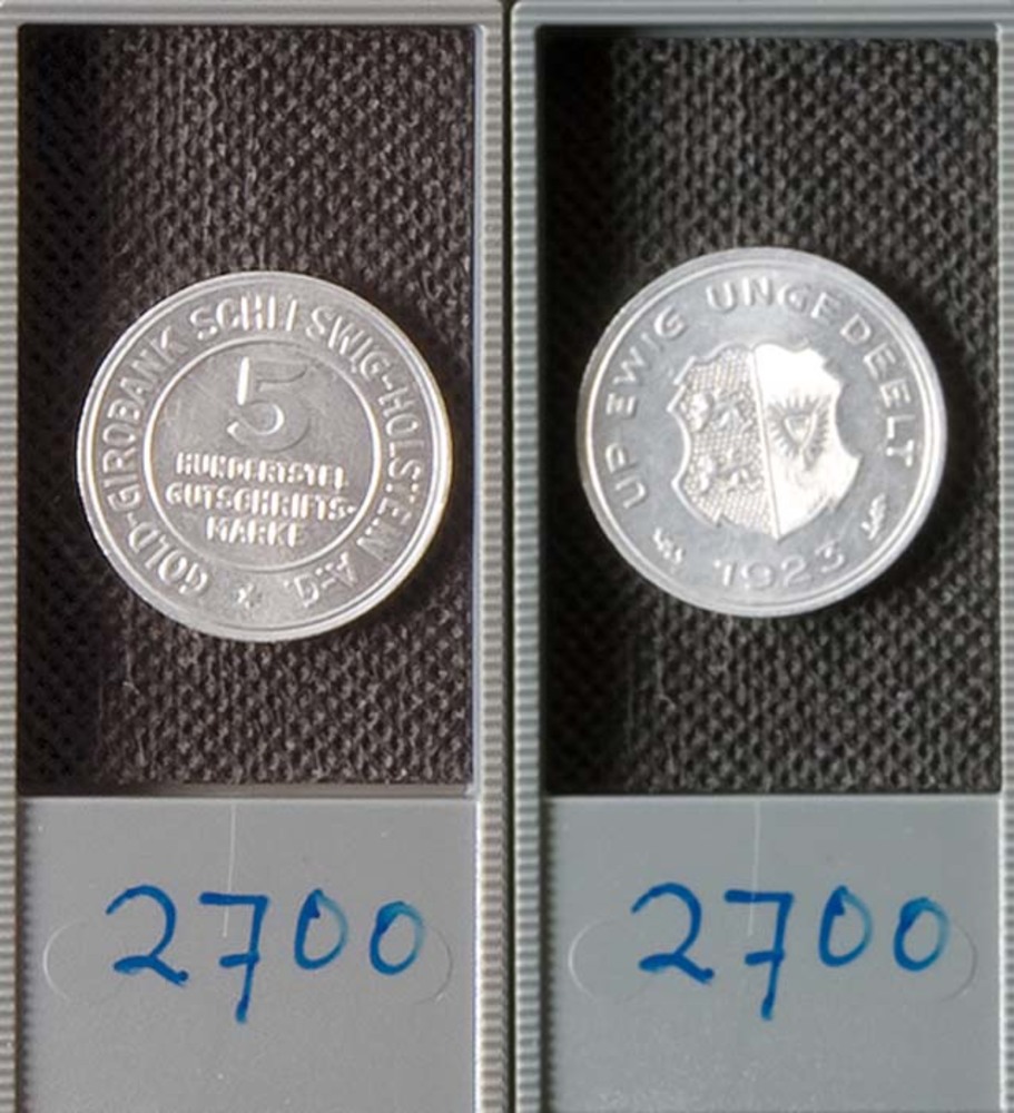 5/100 Gutschriftsmarke van de Gold-Girobank in Schle...