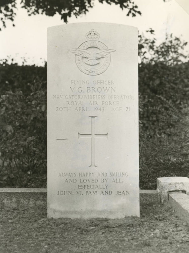 Foto van grafsteen van Flying Officer V.G. Brown. Te...