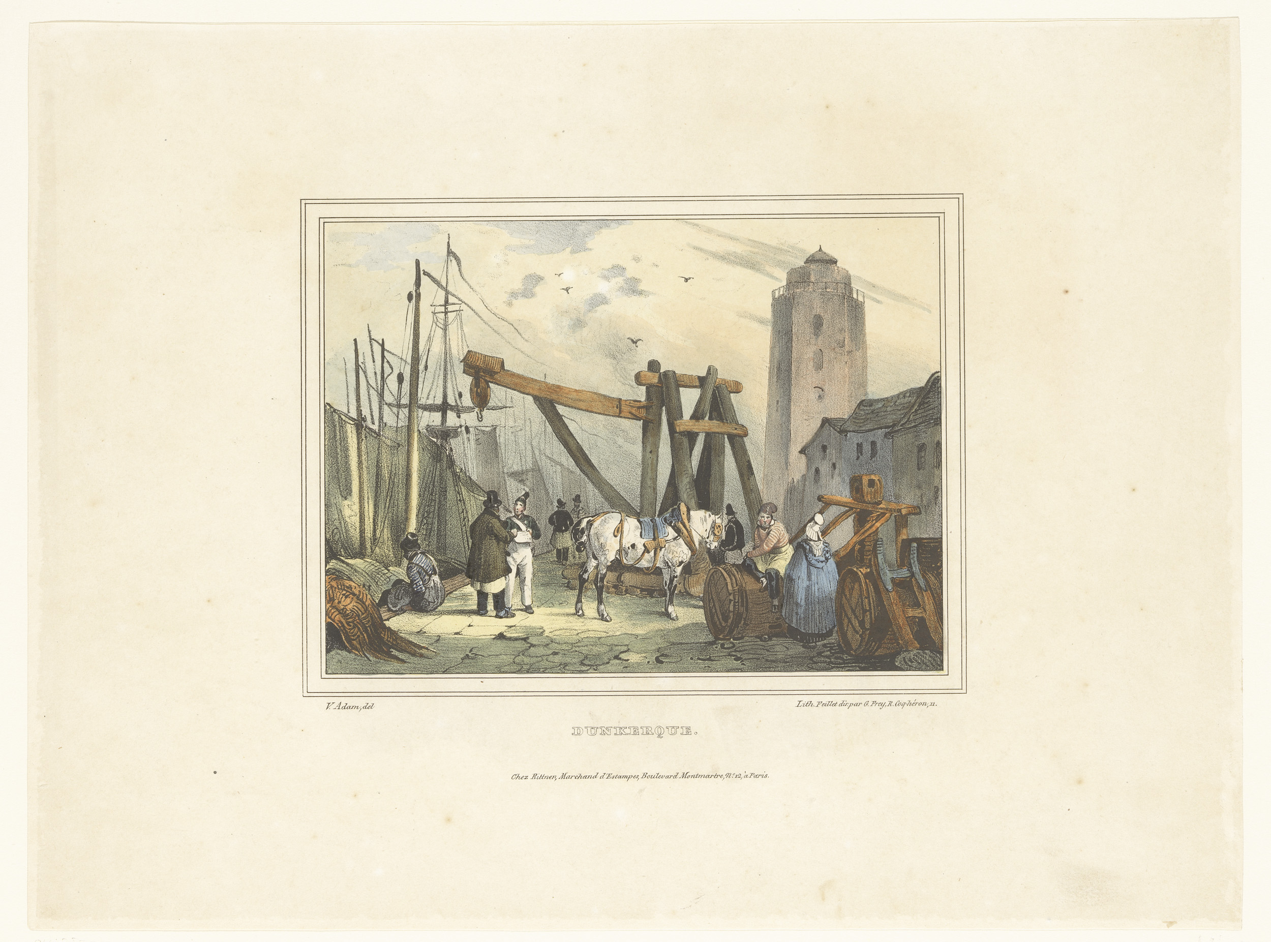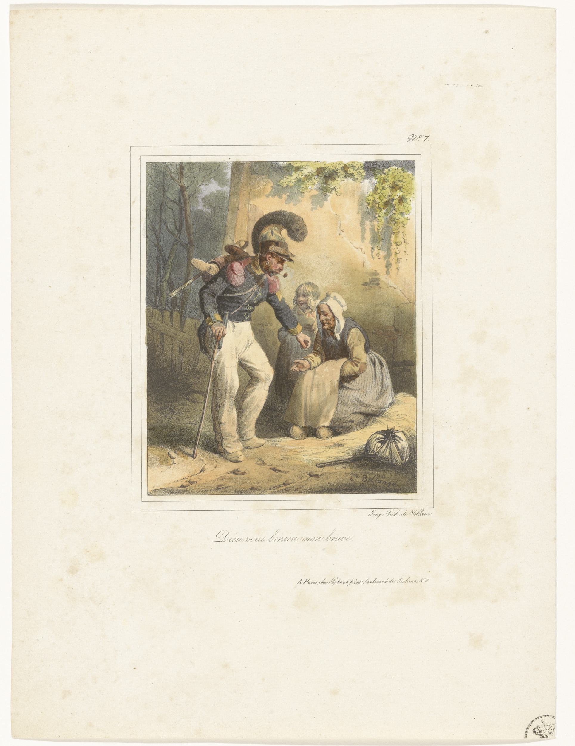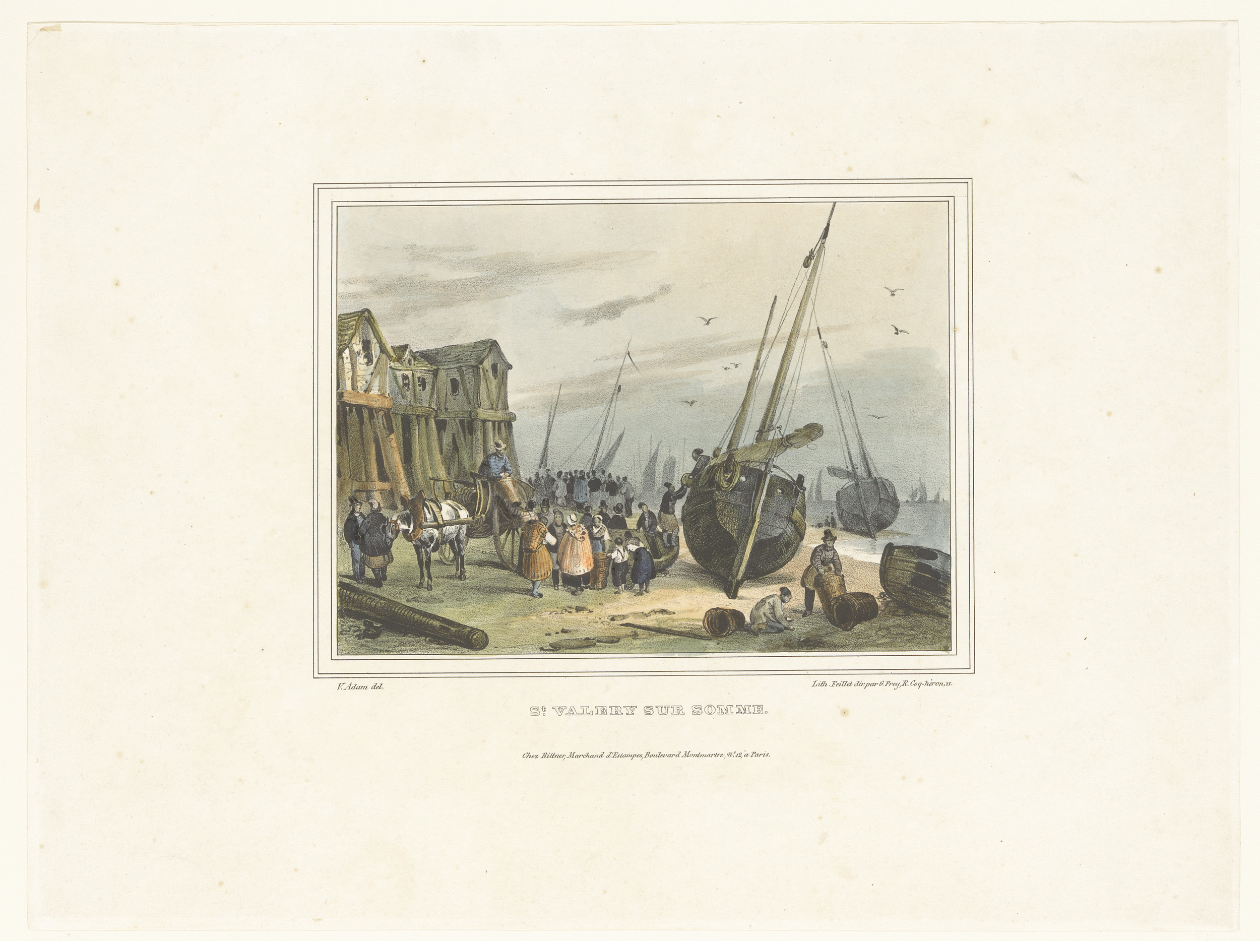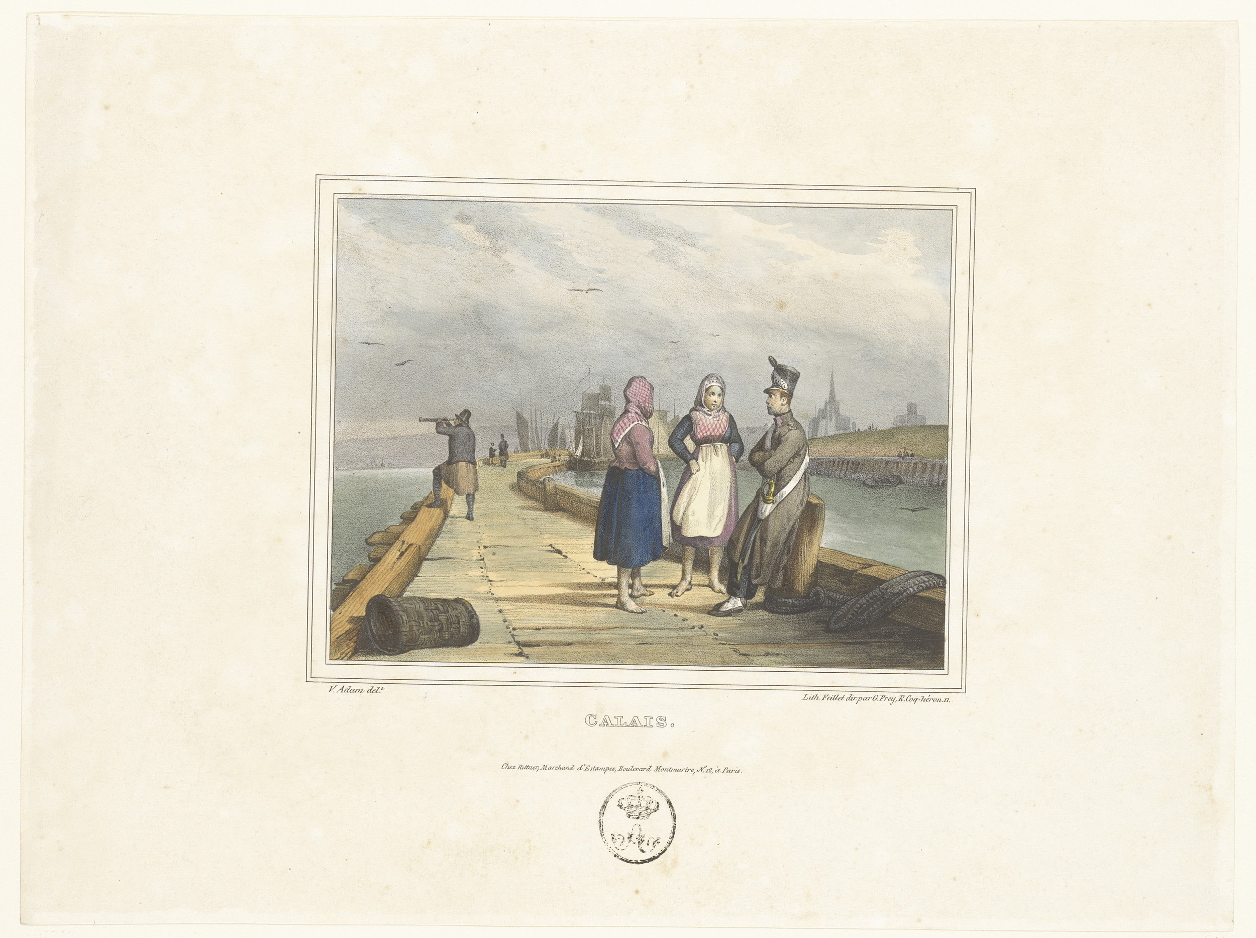 Twee meisjes en een soldaat op de aanlegsteiger bij ...
