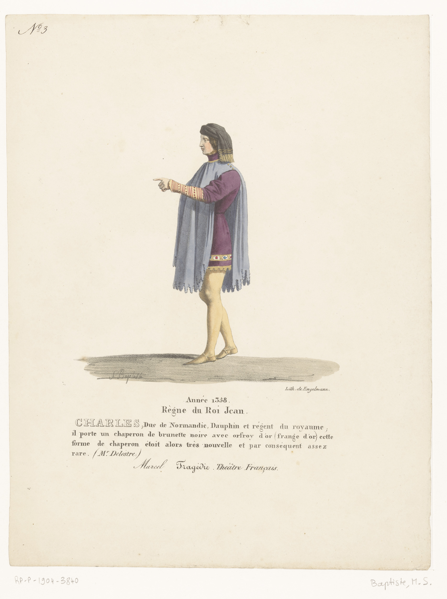Kostuum van de dauphin Karel van Valois uit de trage...