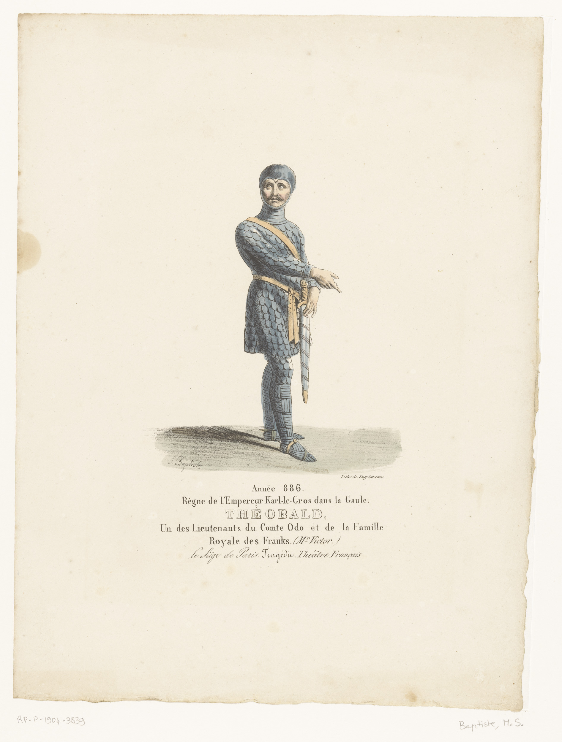 Kostuum van ridder Théobald uit de tragedie Le Siège...