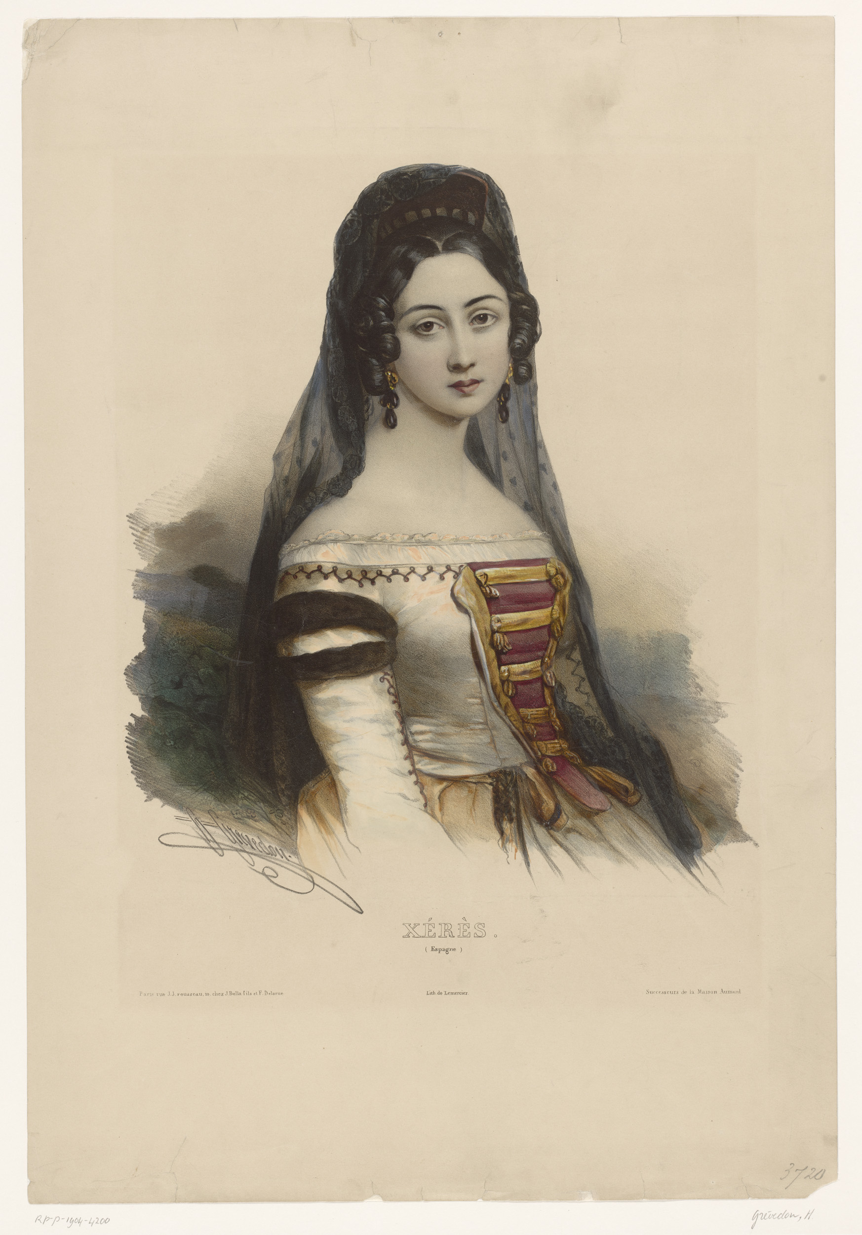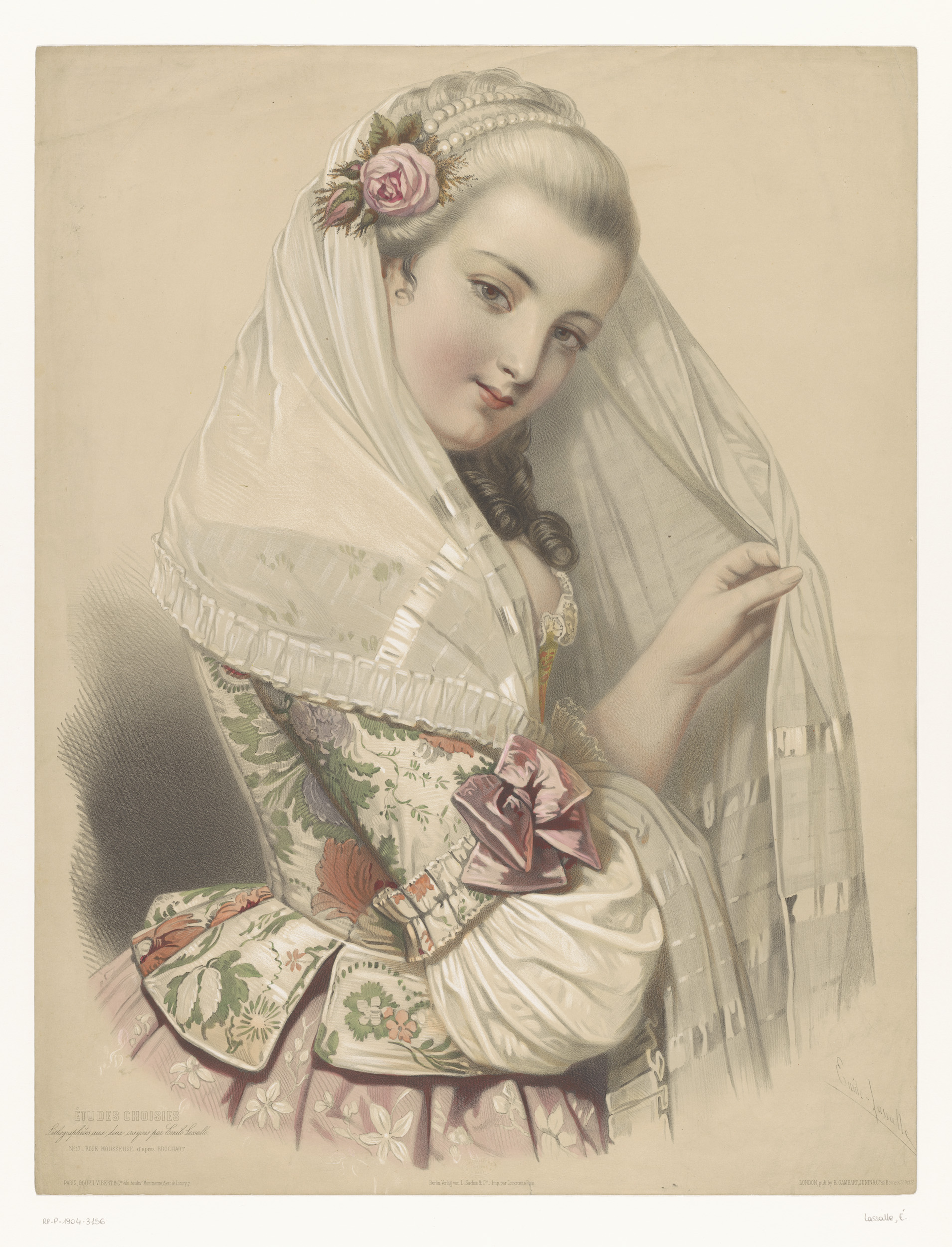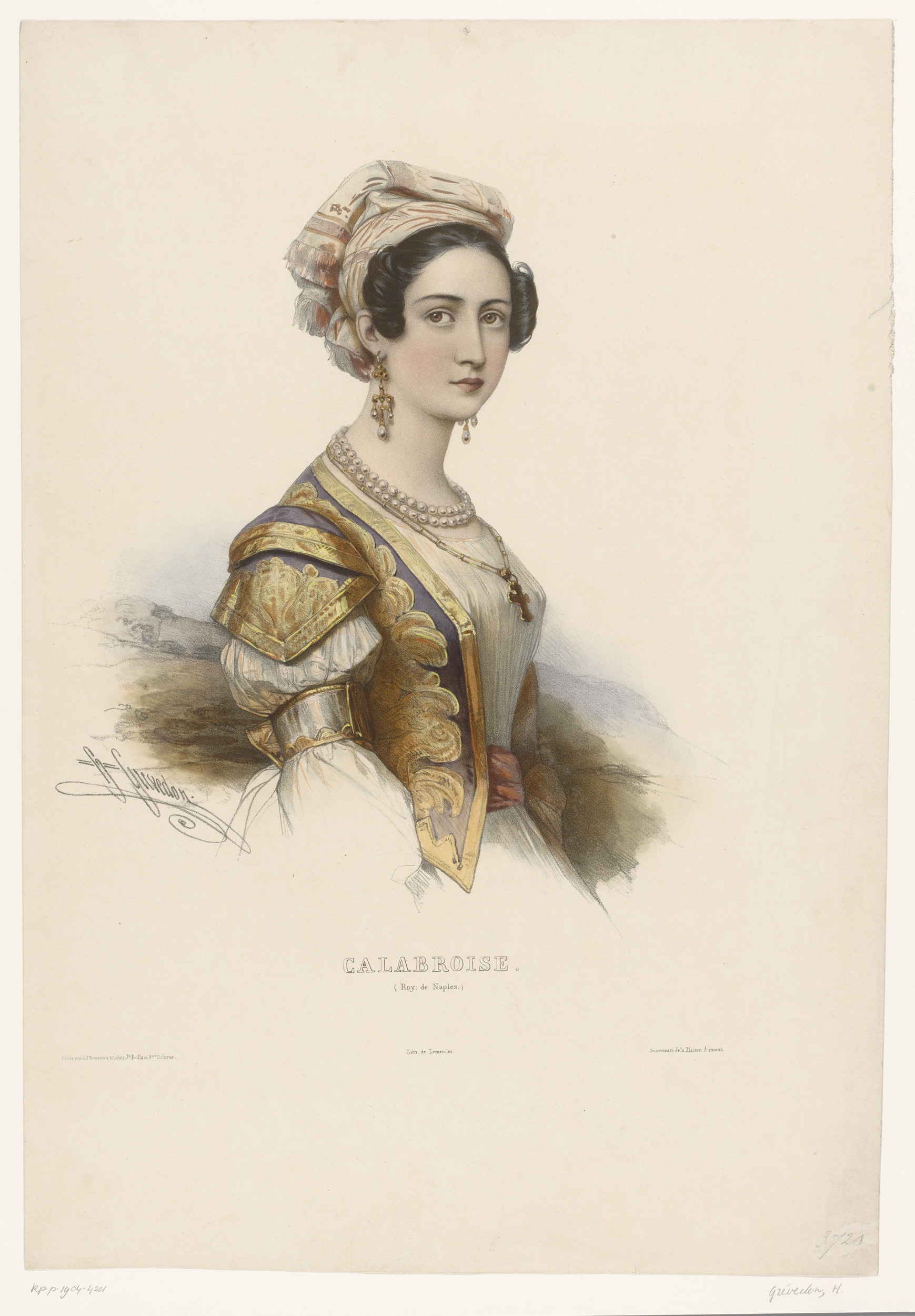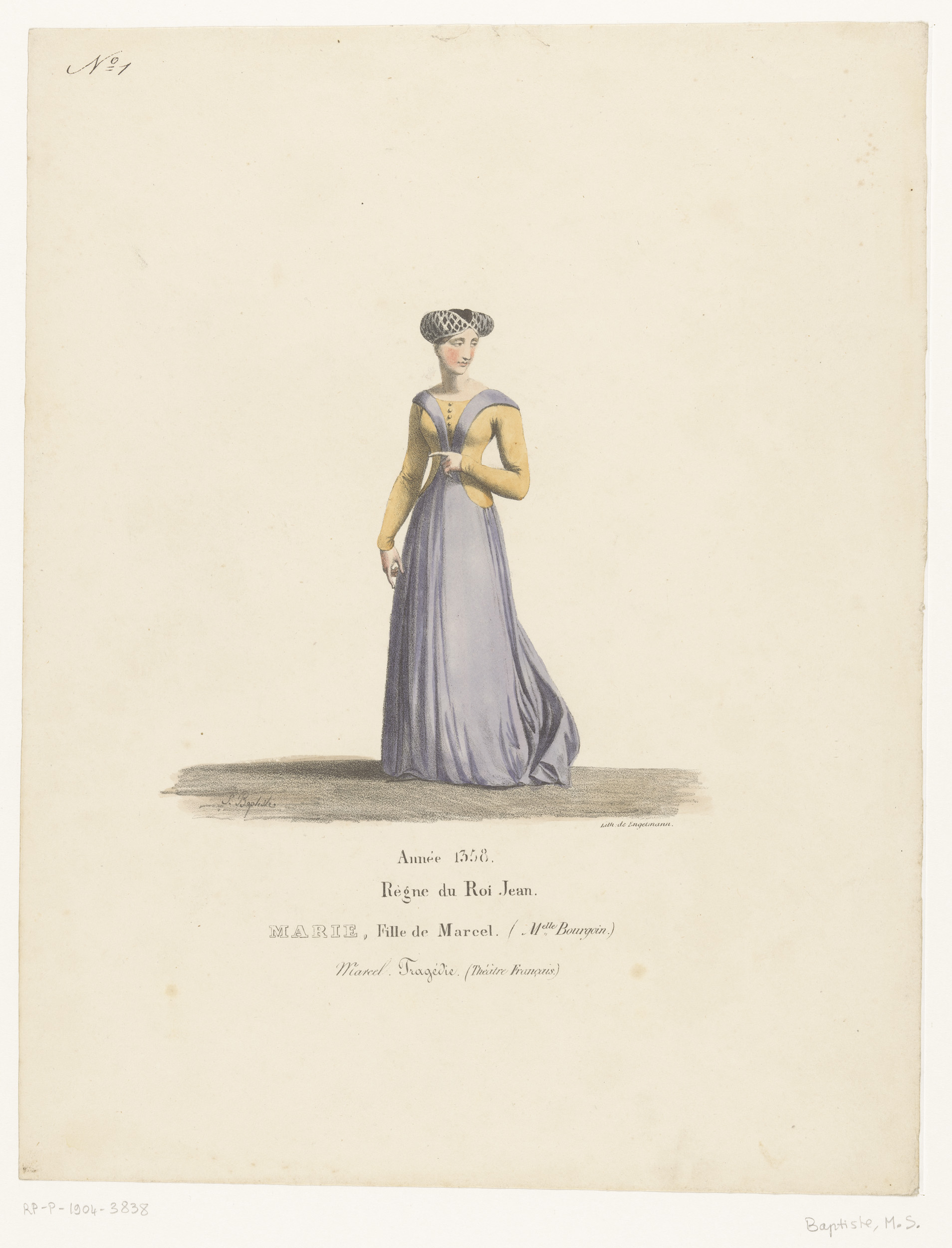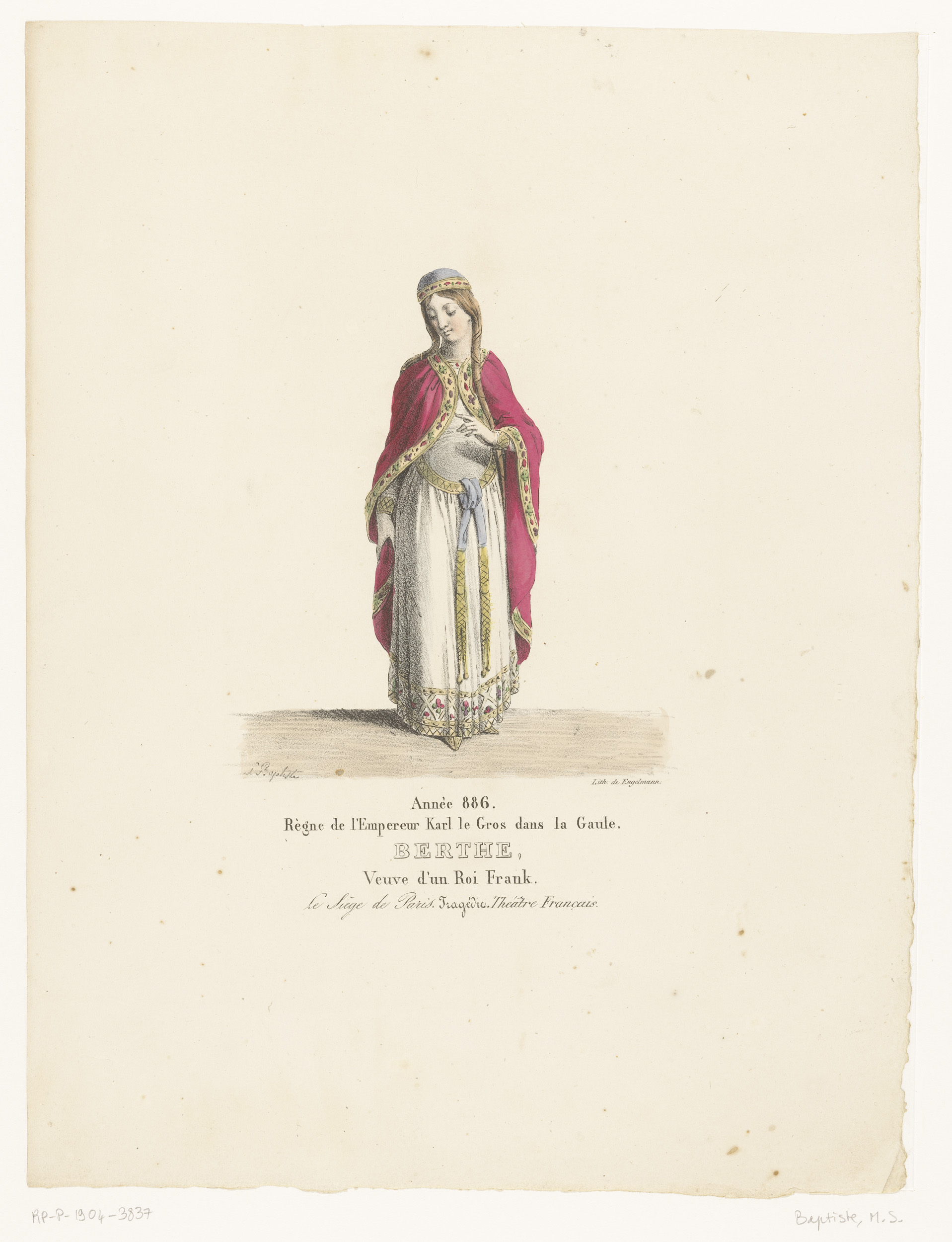 Kostuum van koningin Berthe uit de tragedie Le Siège...