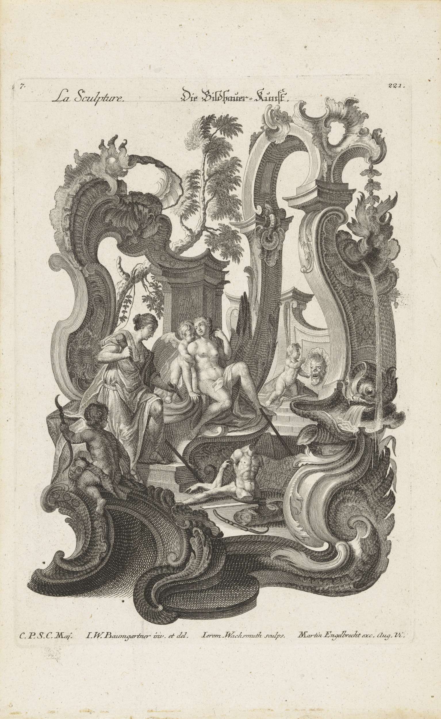 Rocaille met de personificatie van de Beeldhouwkunst...
