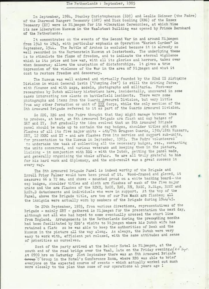 Verslag van het bezoek aan Nijmegen in 1985 van de l...