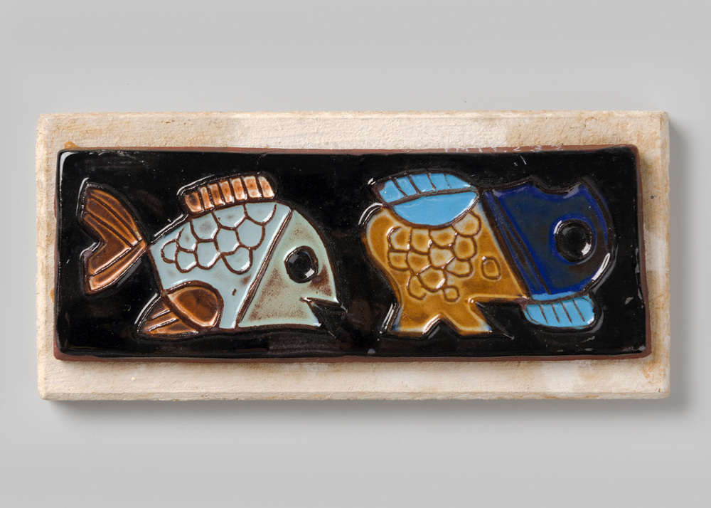 Tegel in cloisonné-techniek, met voorstelling: Vogel...