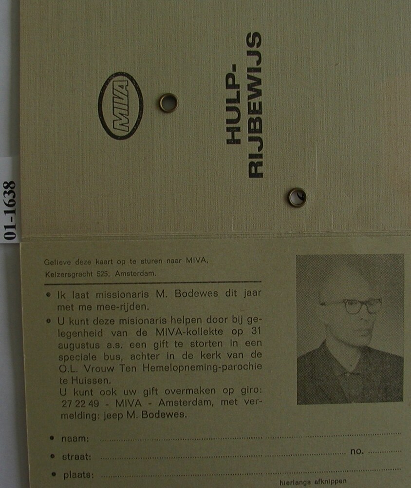 Het voorlopige hulp-rijbewijs van Pater M.Bodewes. M...