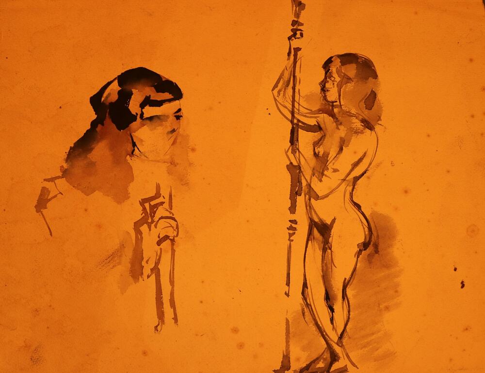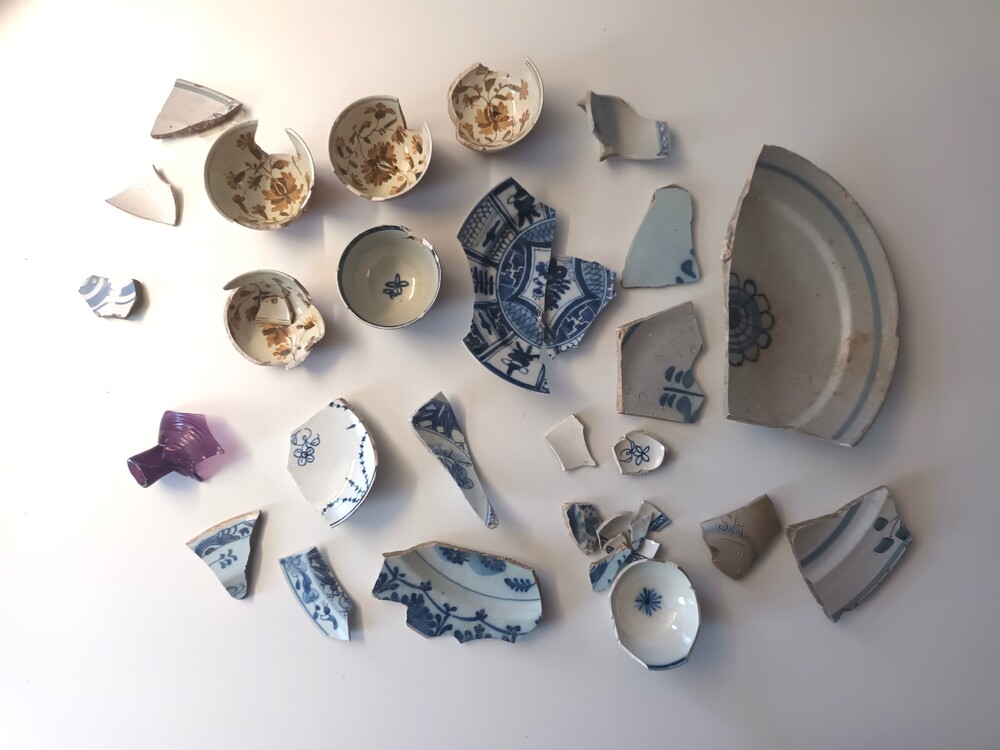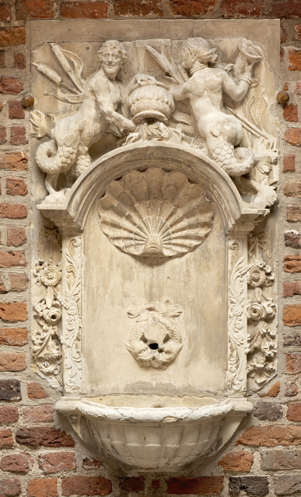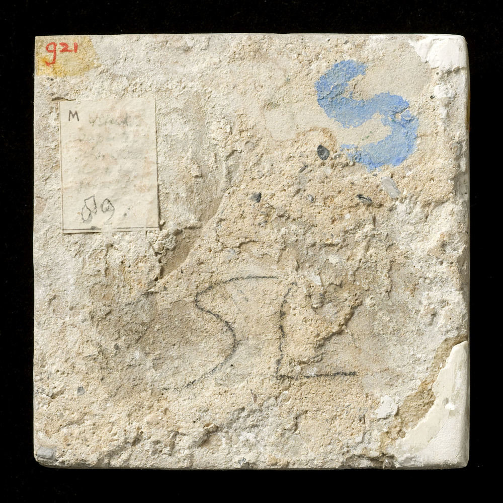 Tegel van keramiek met tinglazuur, voorstellende: wa...