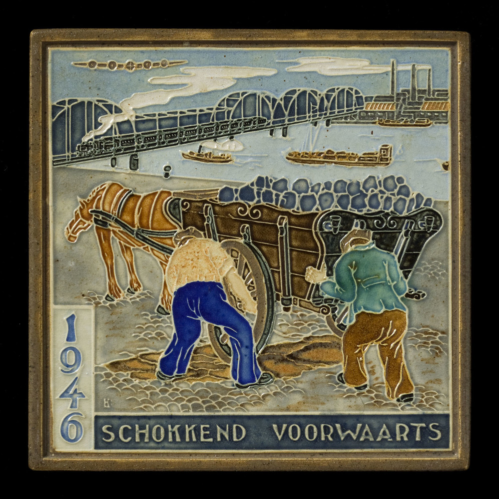 tegel van keramiek, gesjabloneerd, voorstellende: ha...