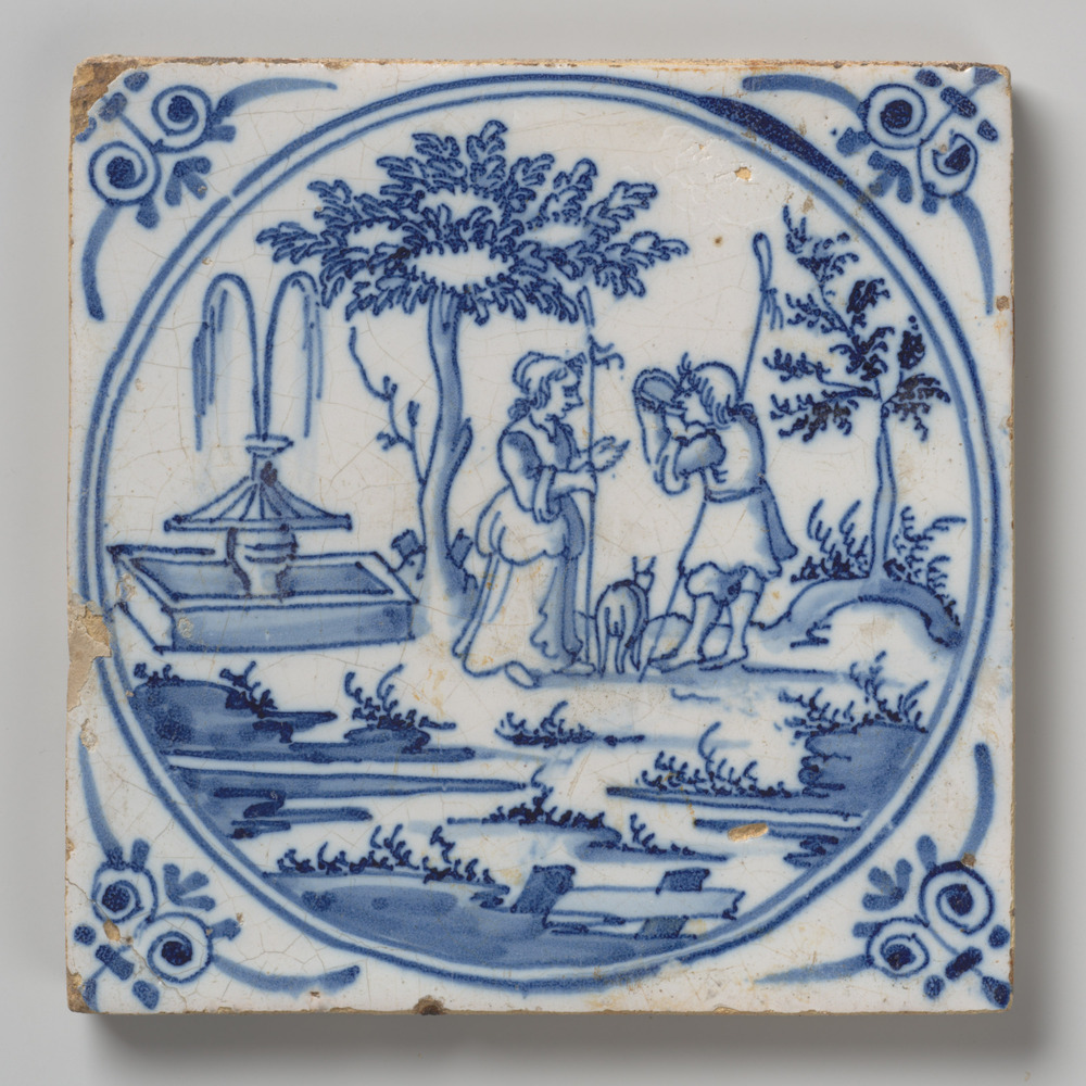 tegel van keramiek met tinglazuur, voorstellende: de...