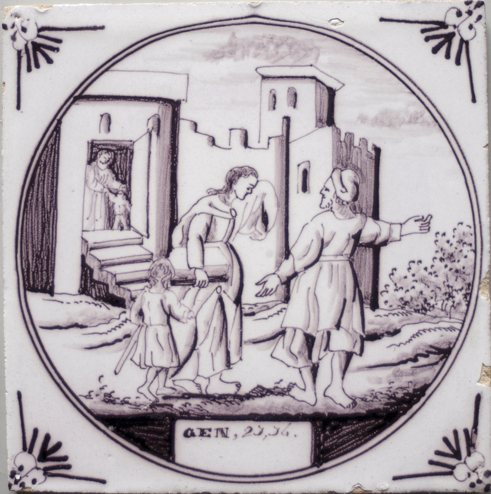 tegel van aardewerk met tinglazuur, voorstellende: h...