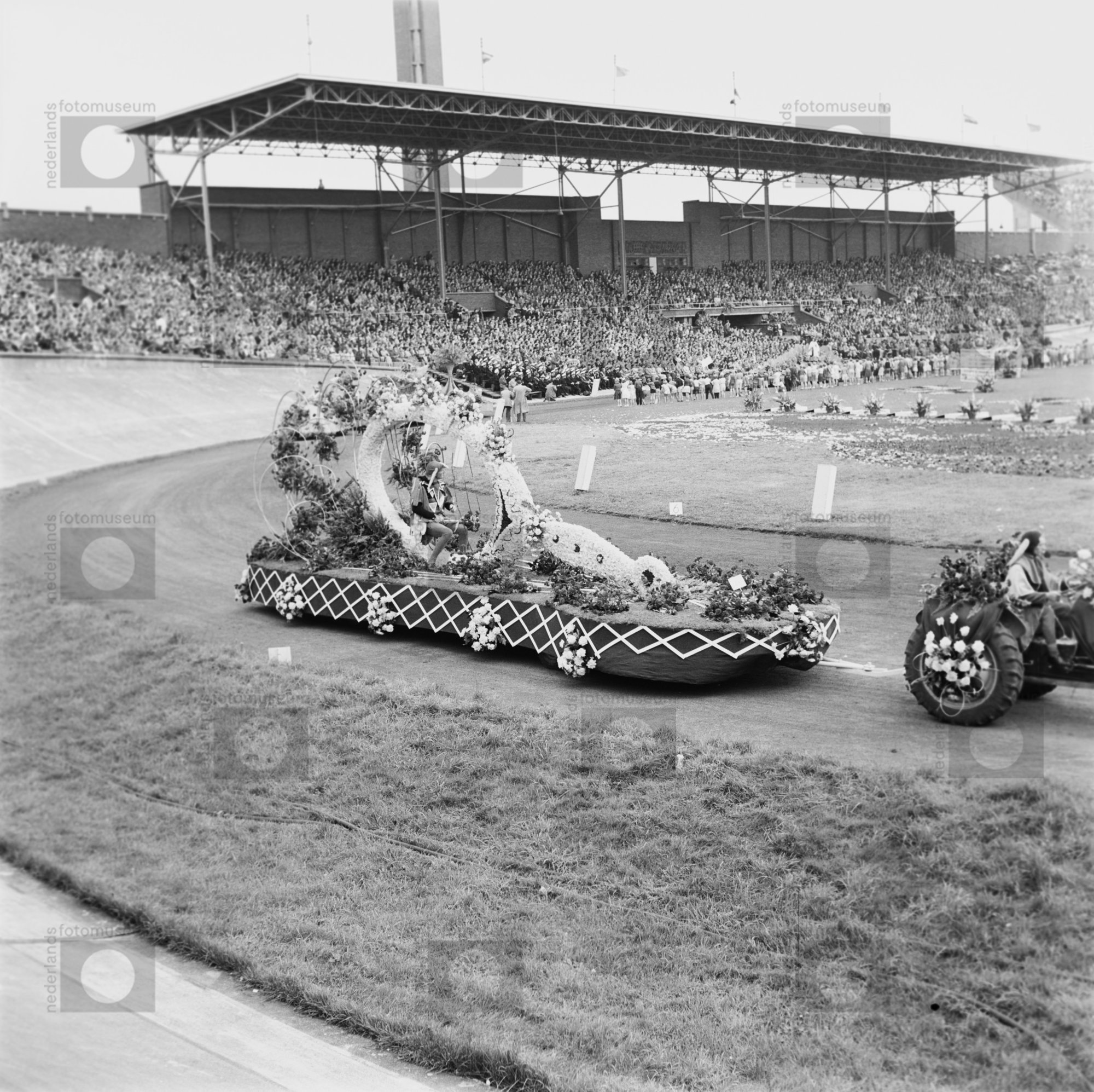 Bloemencorso arriveert in Olympisch Stadion Amsterdam