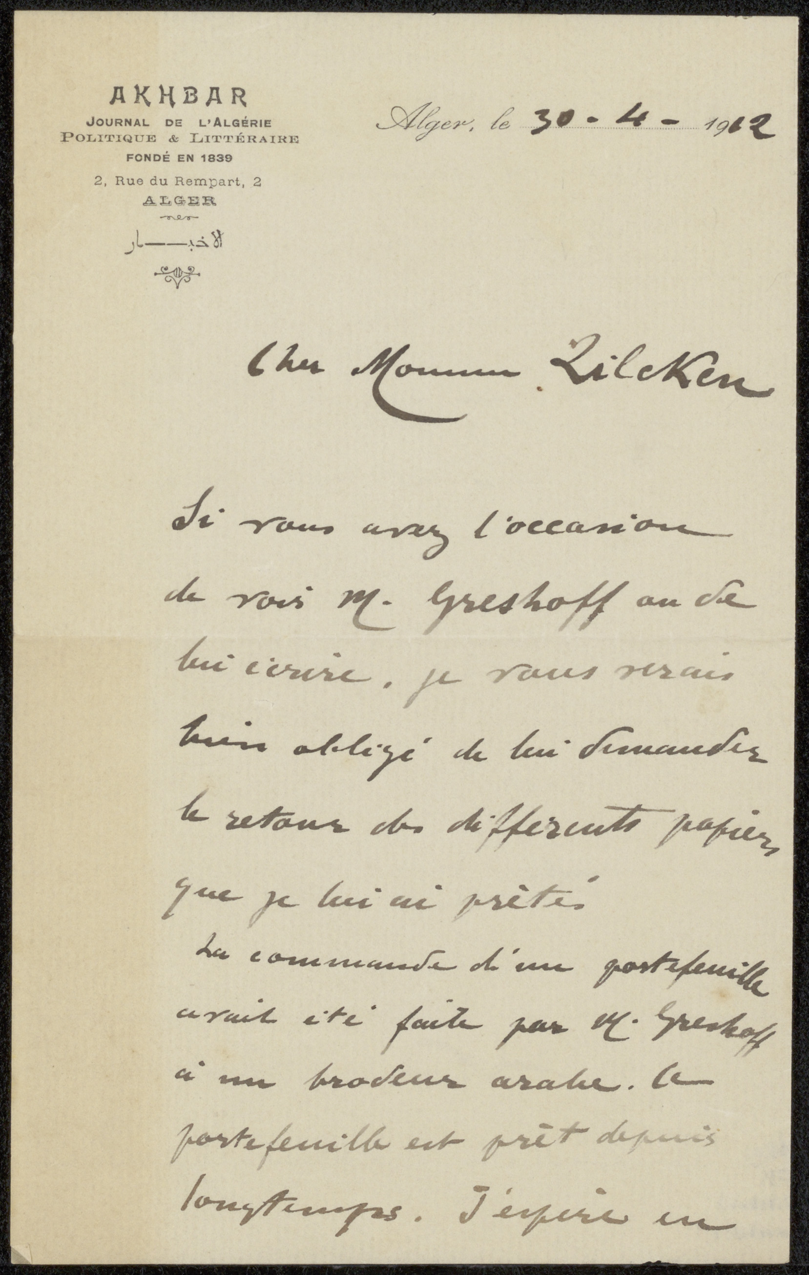 Brief aan Philip Zilcken