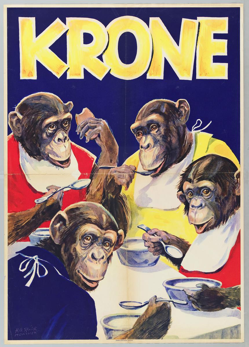 Krone - Apen met slabbetjes voor eten pap