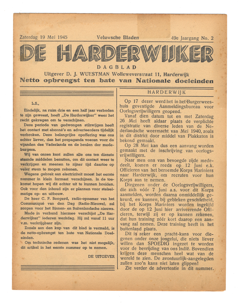 De Harderwijker van zaterdag 19 mei 1945