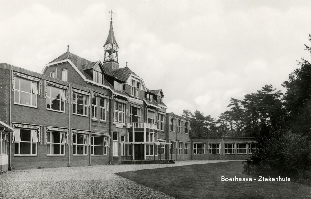 Prentbriefkaart, getiteld 'Boerhaave - Ziekenhuis , ...