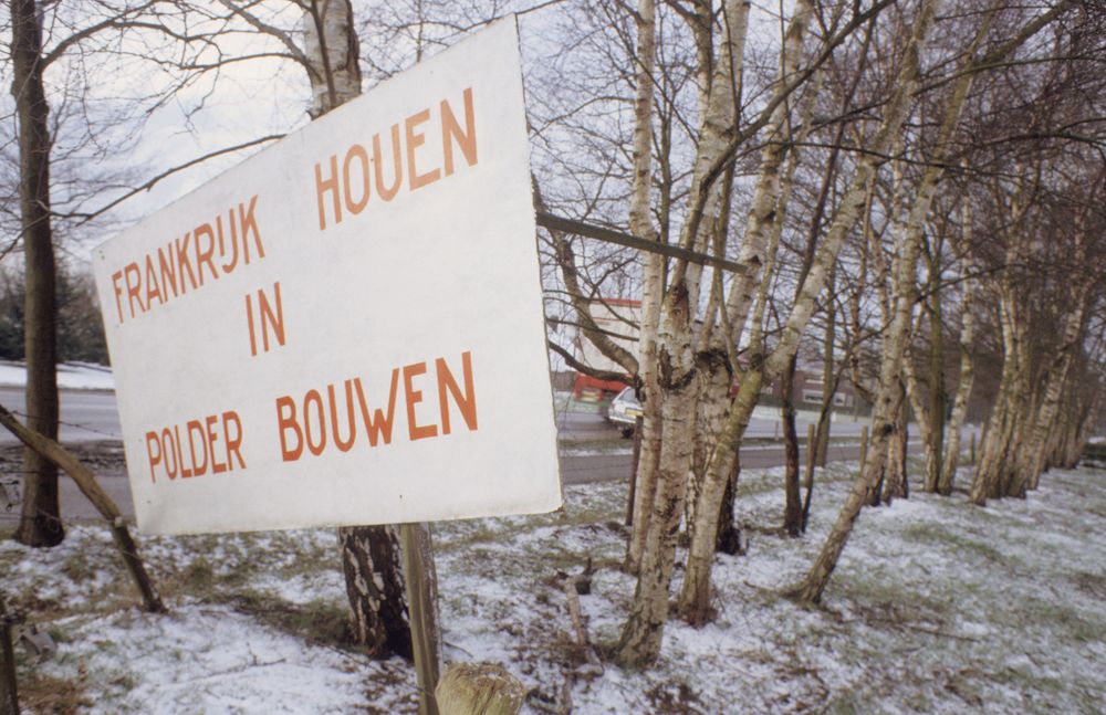 Protestbord 'Frankrijk houen in polder bouwen'