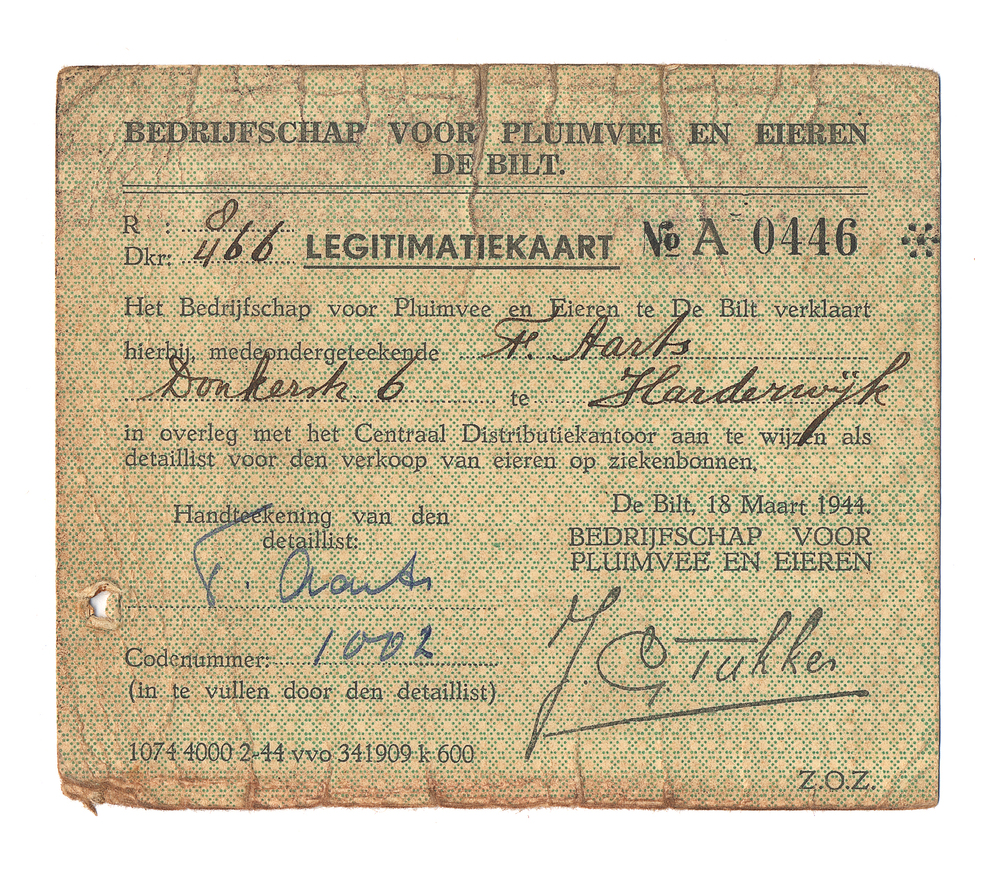 Legitimatiekaart van het Bedrijfsschap voor Pluimvee...