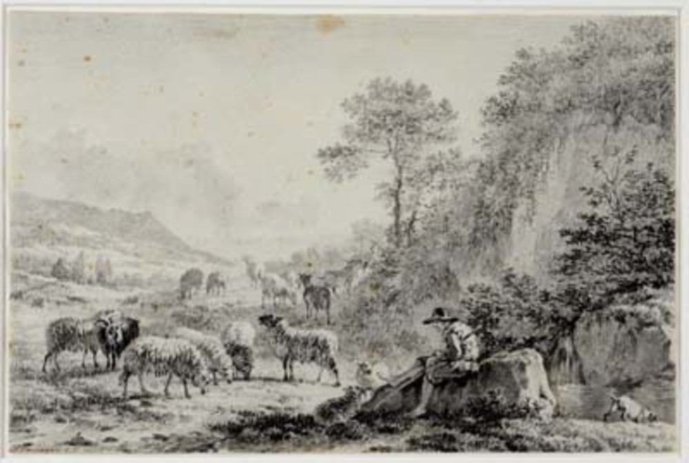 Berglandschap met herder en kudde