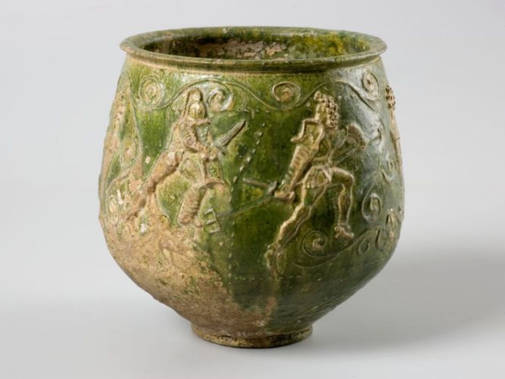 Gladiatorenbeker van aardewerk uit de Romeinse tijd