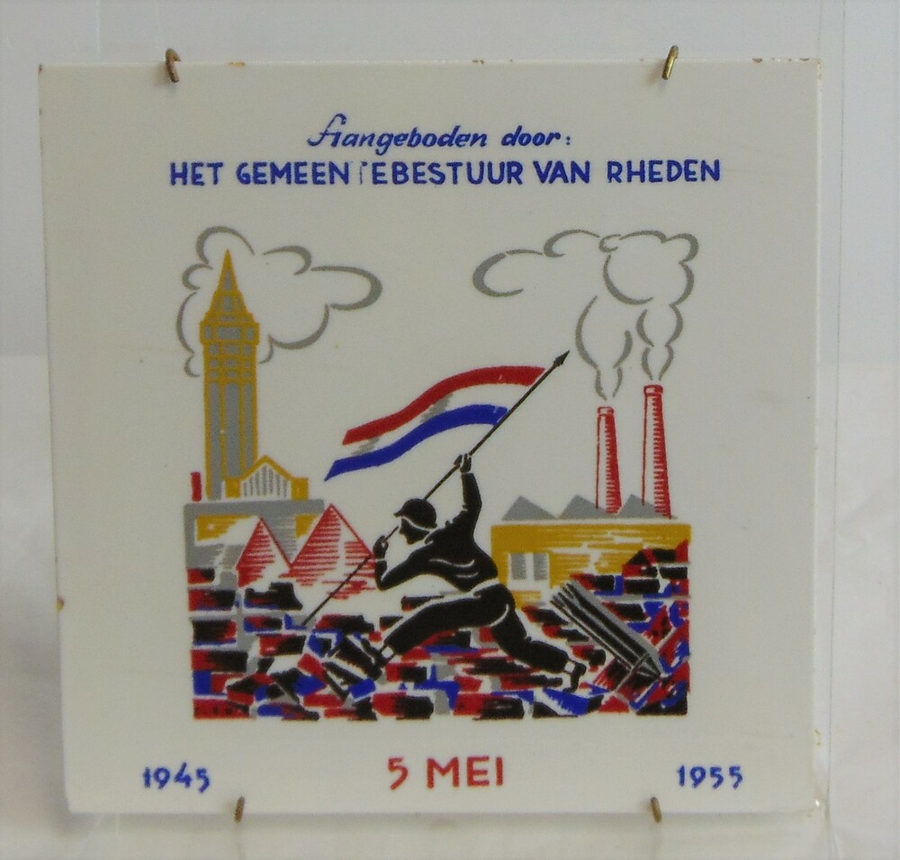 tegel , 'Aangeboden door het gemeentebestuur van Rhe...