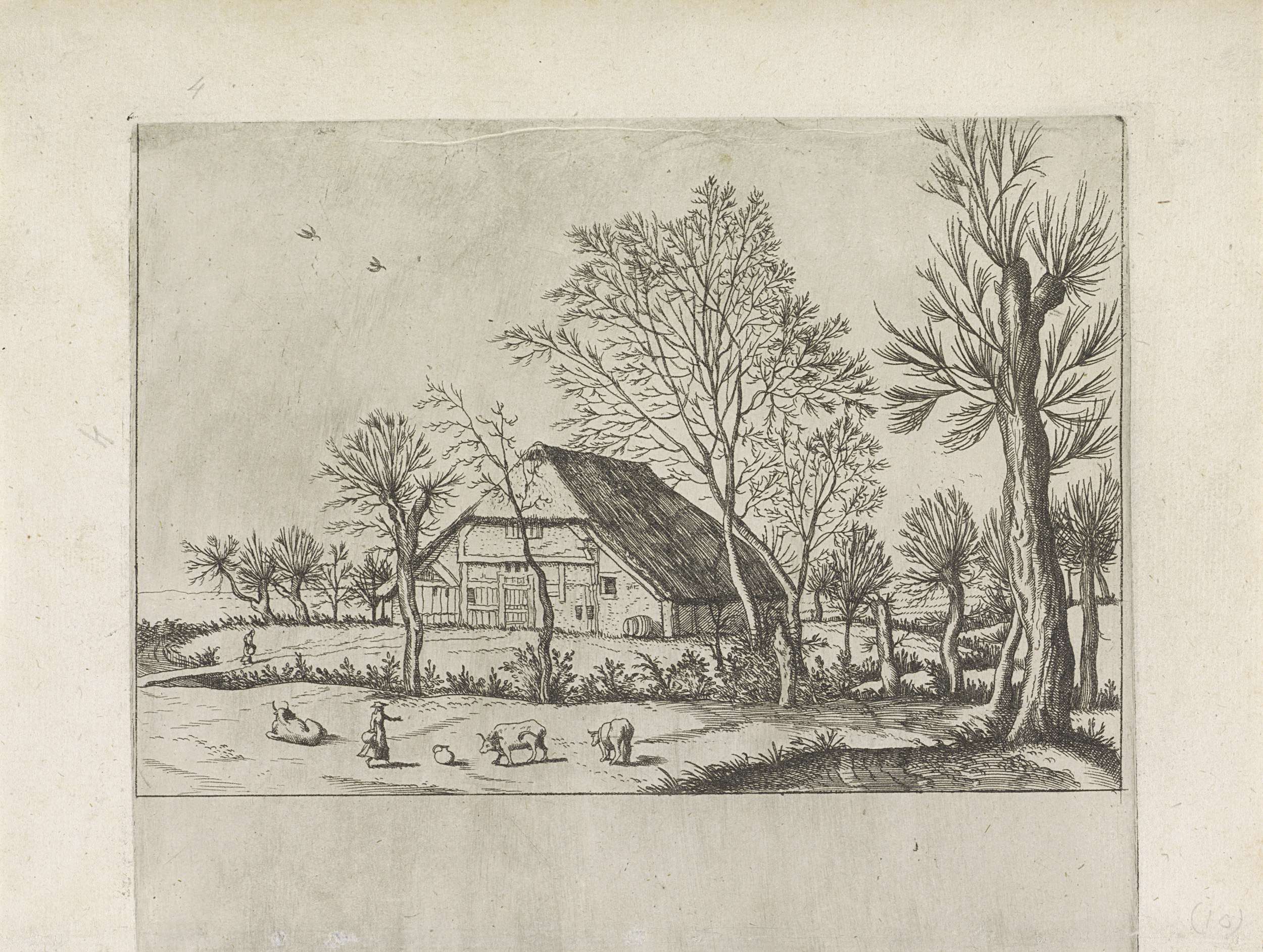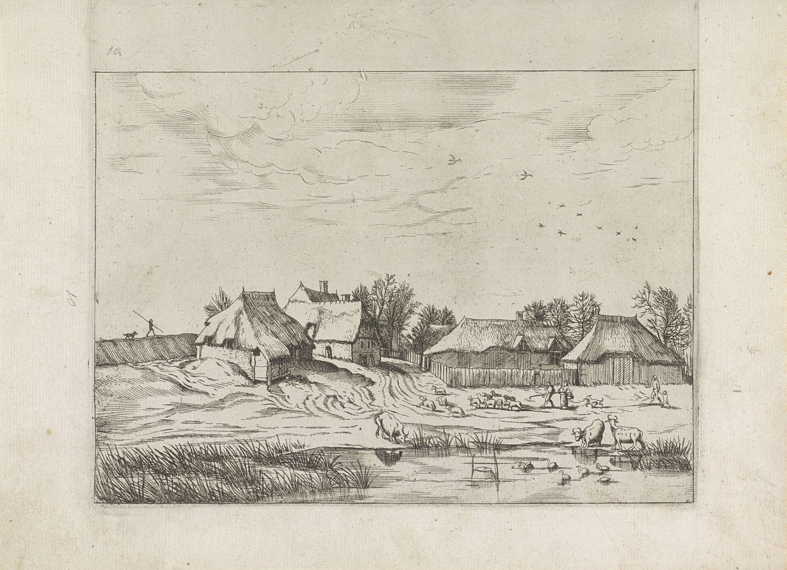 Landschap met boerderijen en een veehoeder