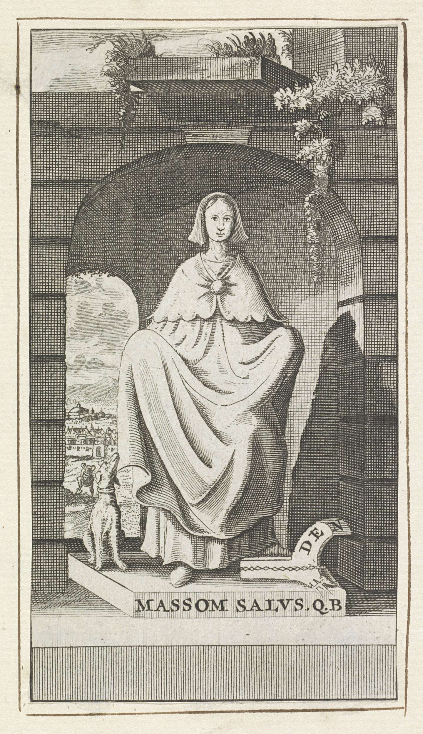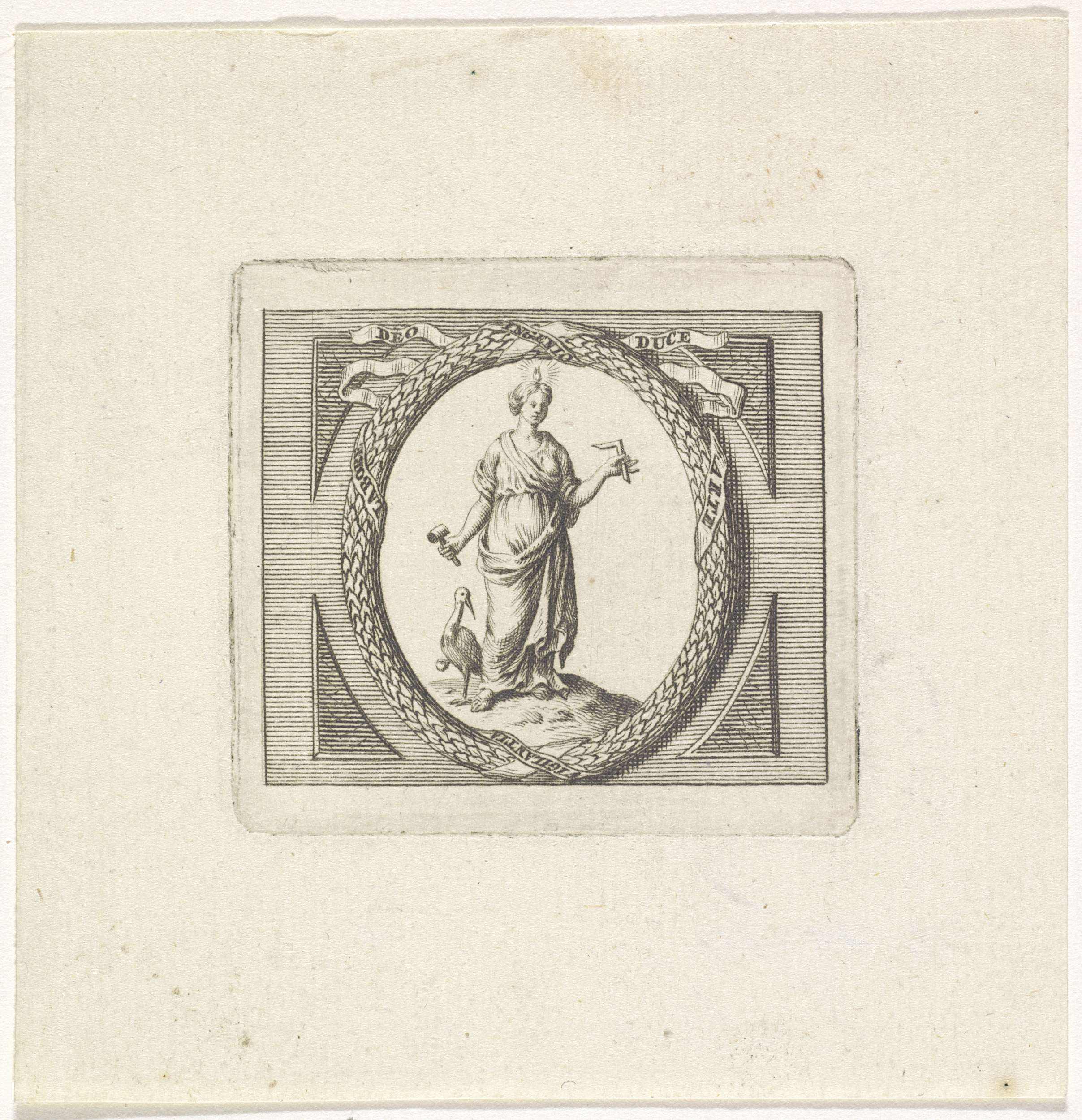 Vignet met een vrouw met de attributen van waakzaamh...
