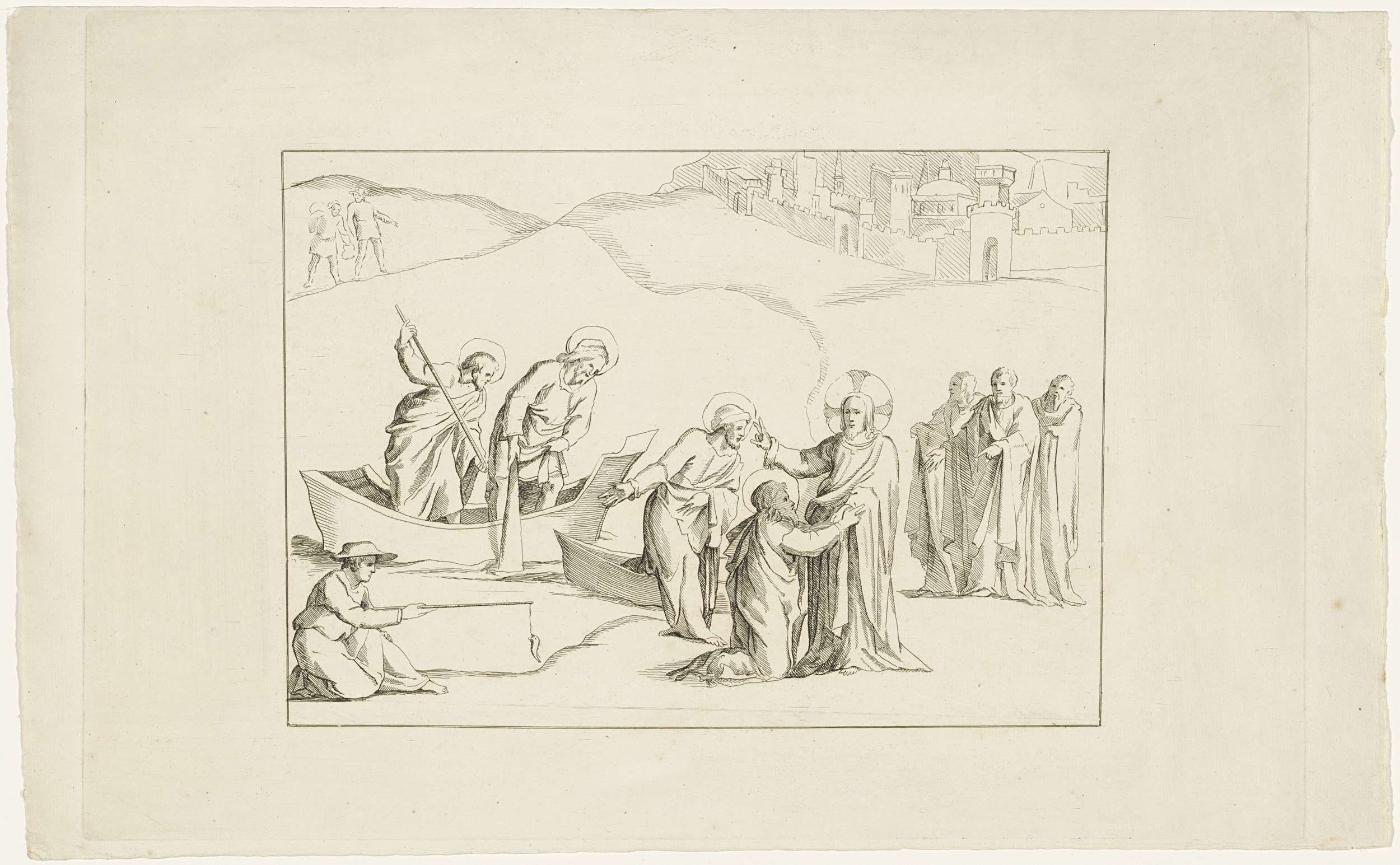Landschap met twee figuren in een boot