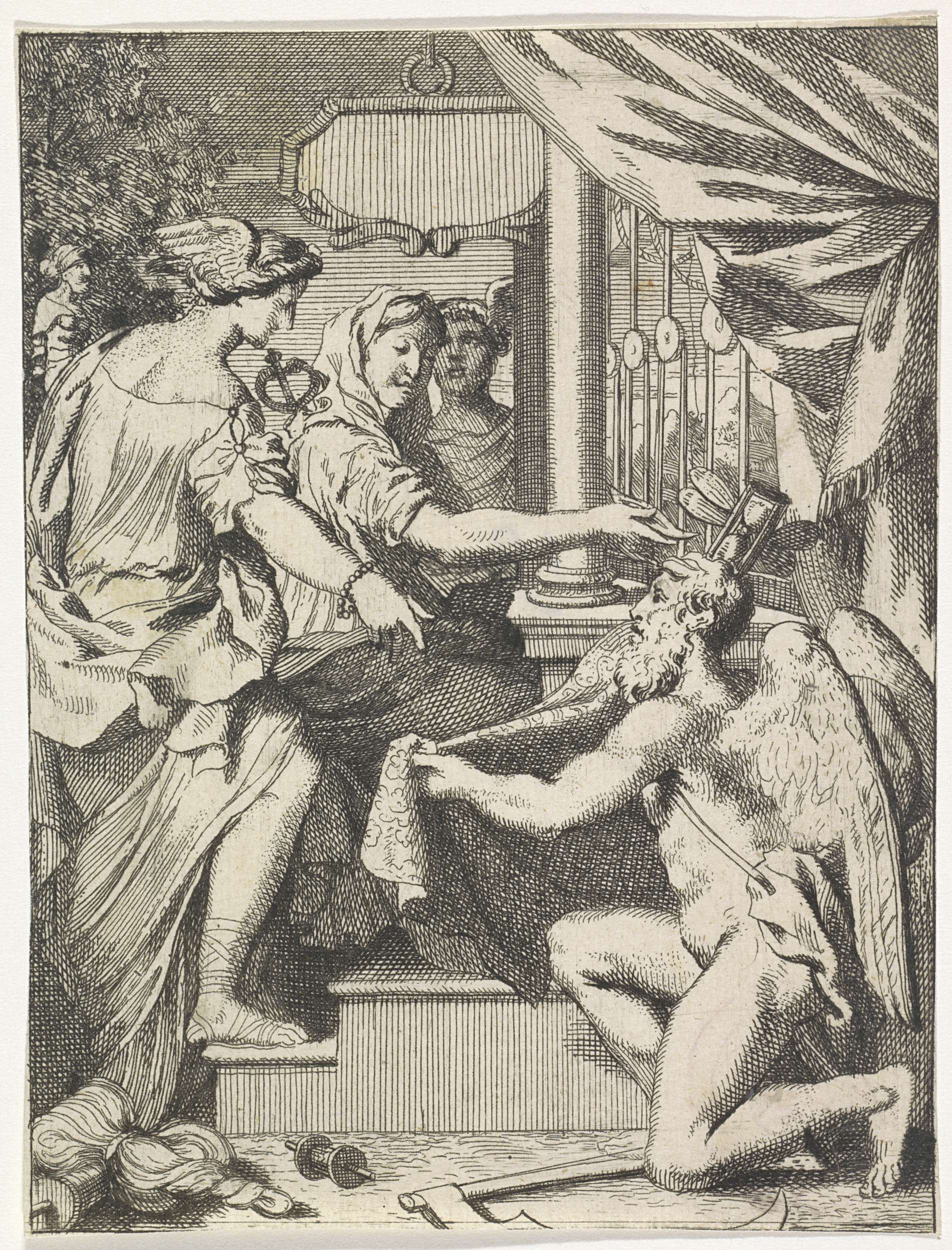 Allegorie met een vrouw aan een weefgetouw