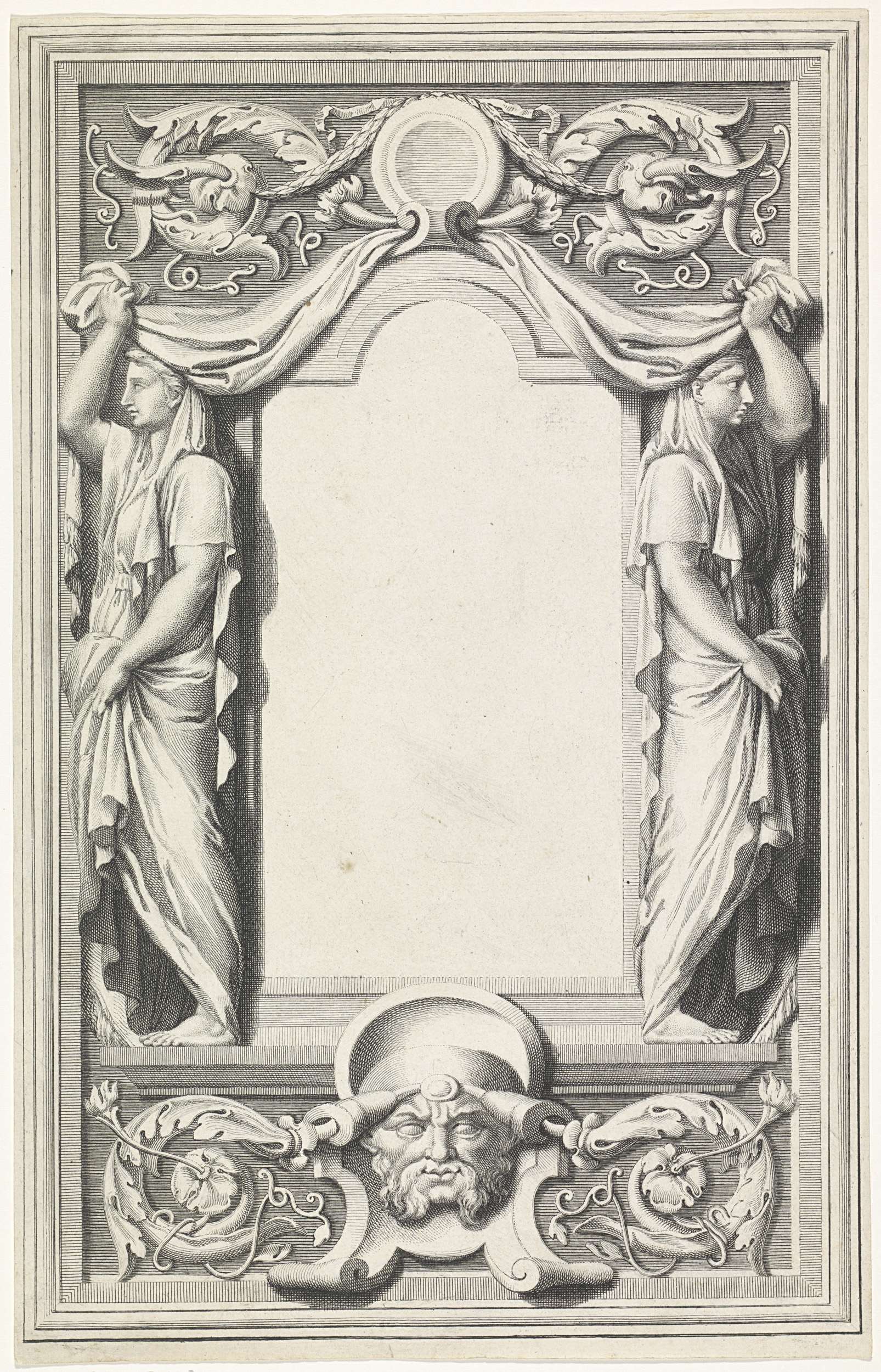 Omlijsting met twee staande vrouwenfiguren