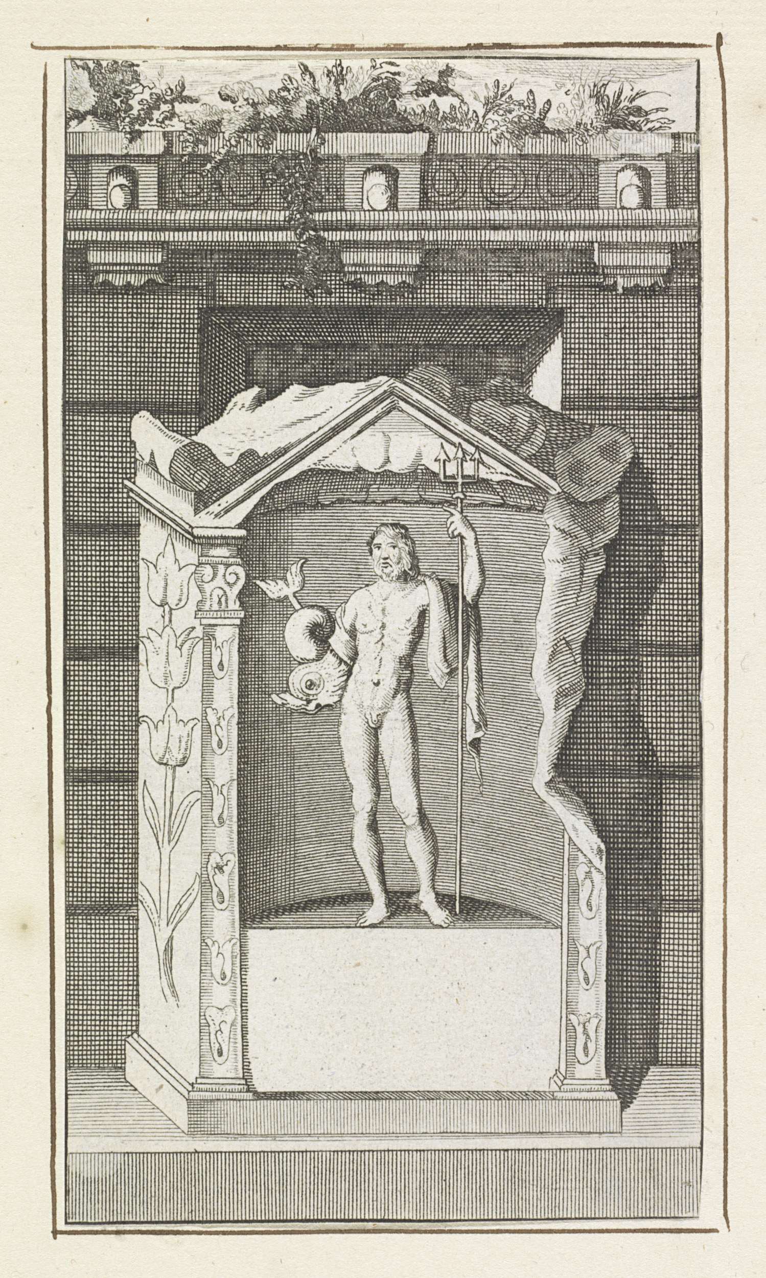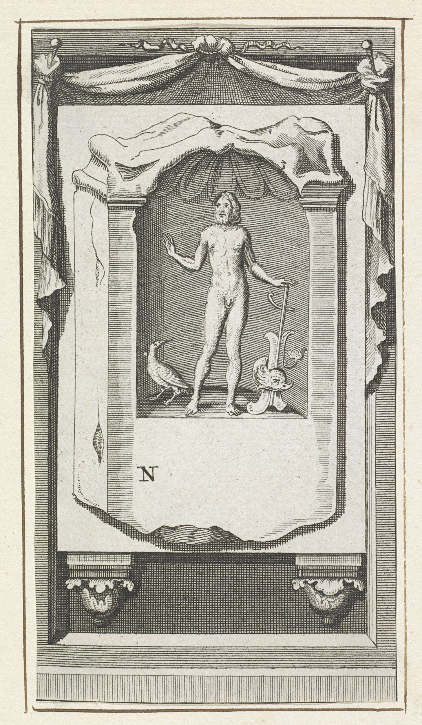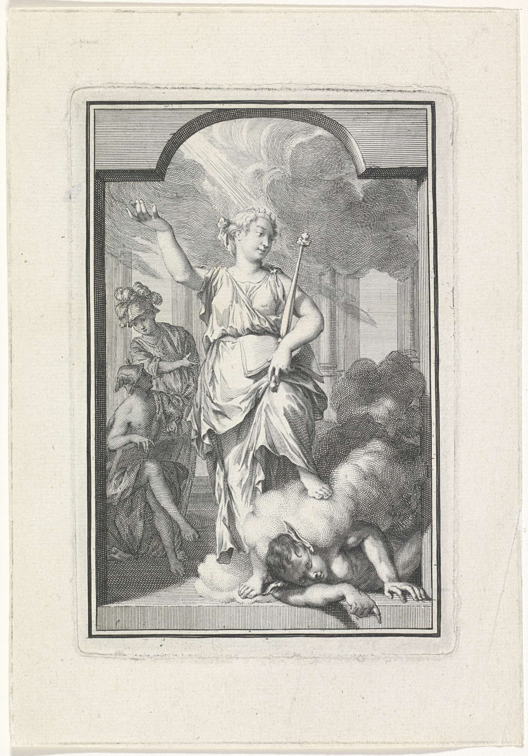 Vignet met Apollo en vrouwelijke allegorische figuur