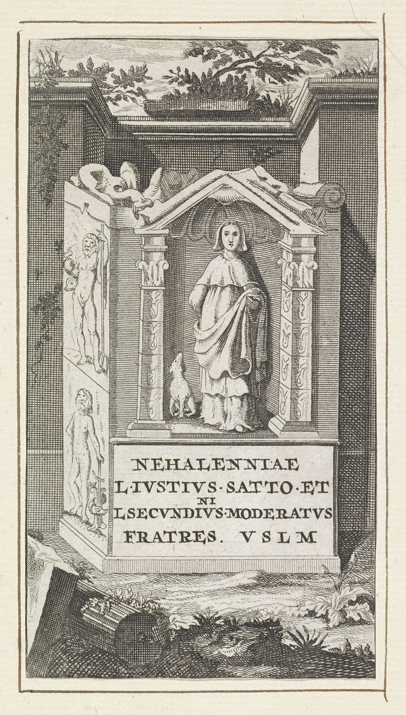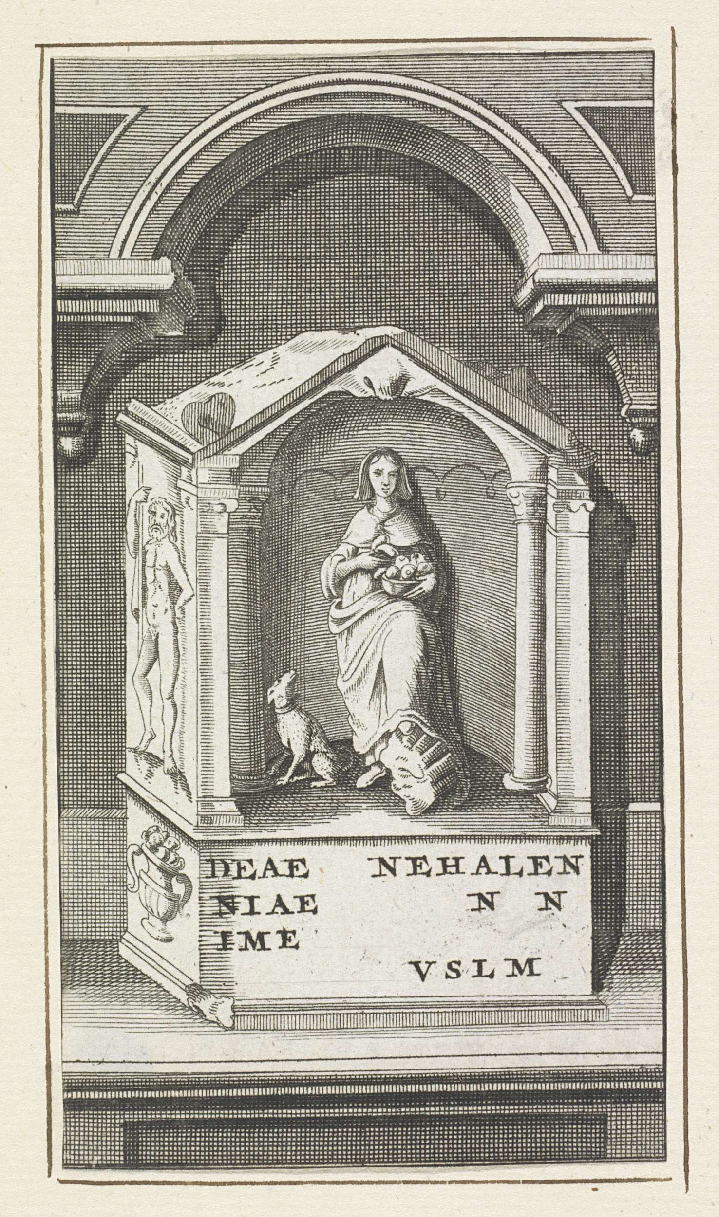 Nehalennia-altaar met staande Nehalennia en haar hond
