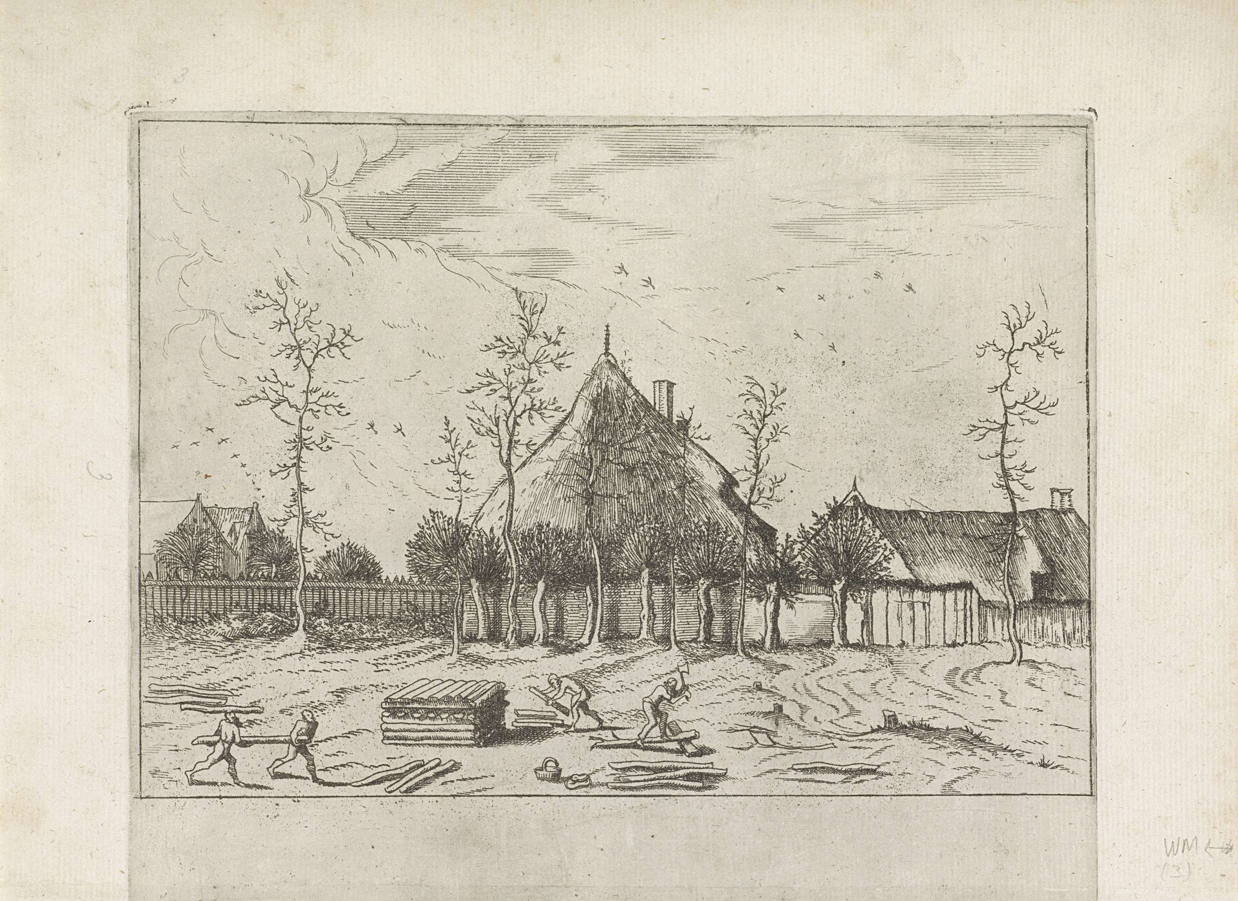 Landschap met boerderij en houthakkers