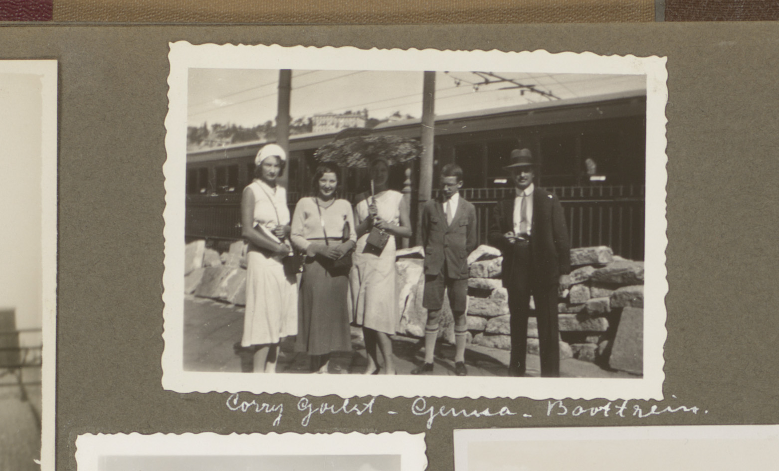 Groepsportret van een gezelschap, lopend in Scheveni...
