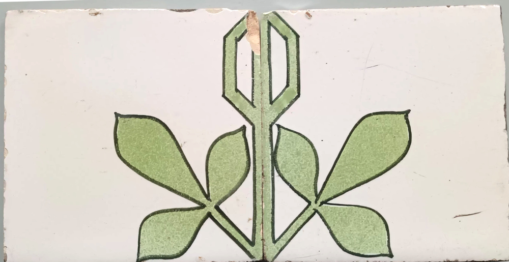 randtegel van keramiek met tinglazuur, voorstellende...
