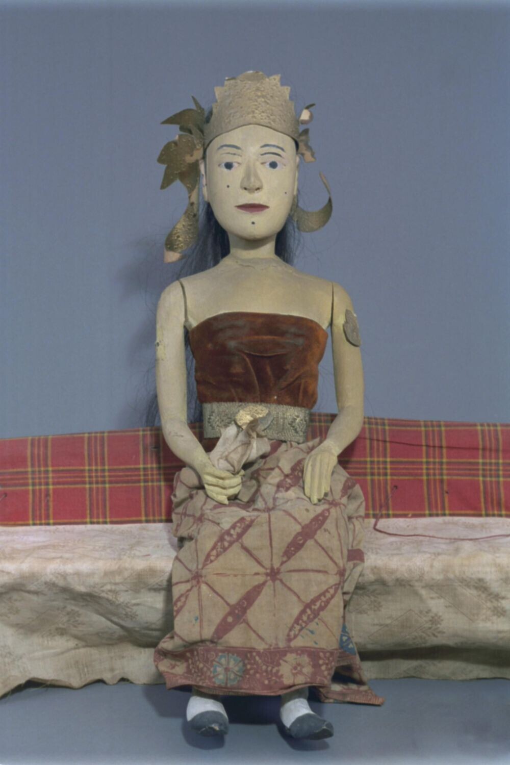 Houten wajangpop, voorstellende Prabu Timbu Taounan