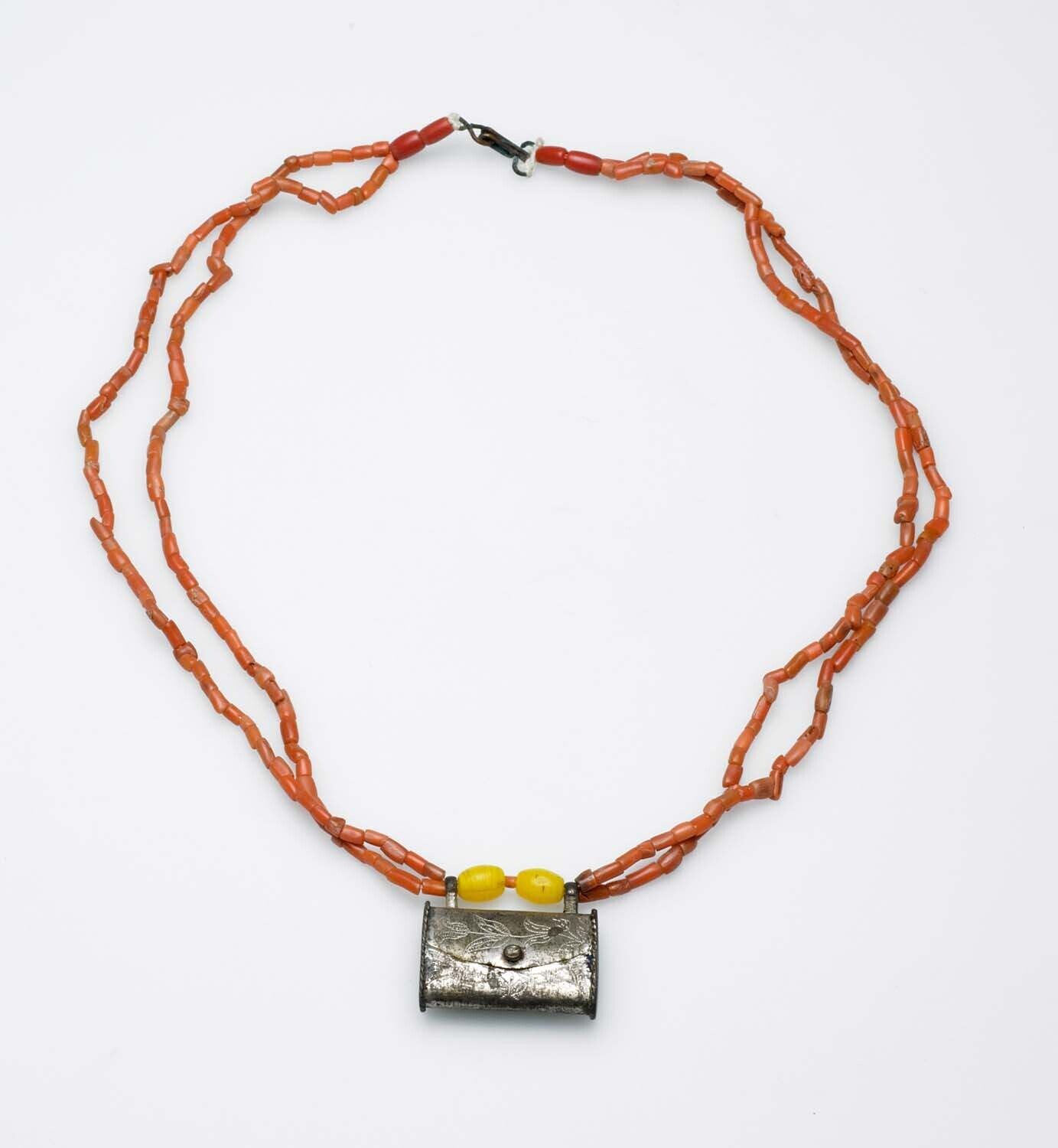 Bloedkoralen halssnoer met zilveren kleine amuletdoos