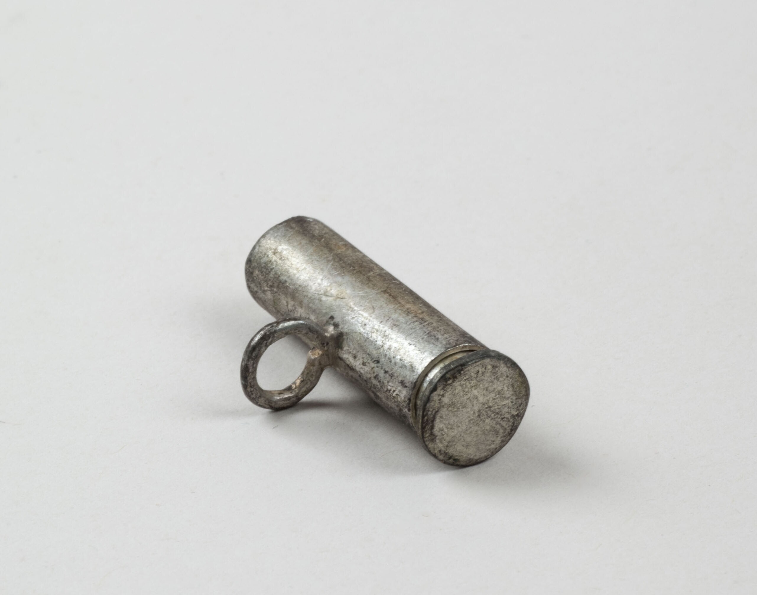 Zilveren amuletdoos in de vorm van twee in elkaar sc...