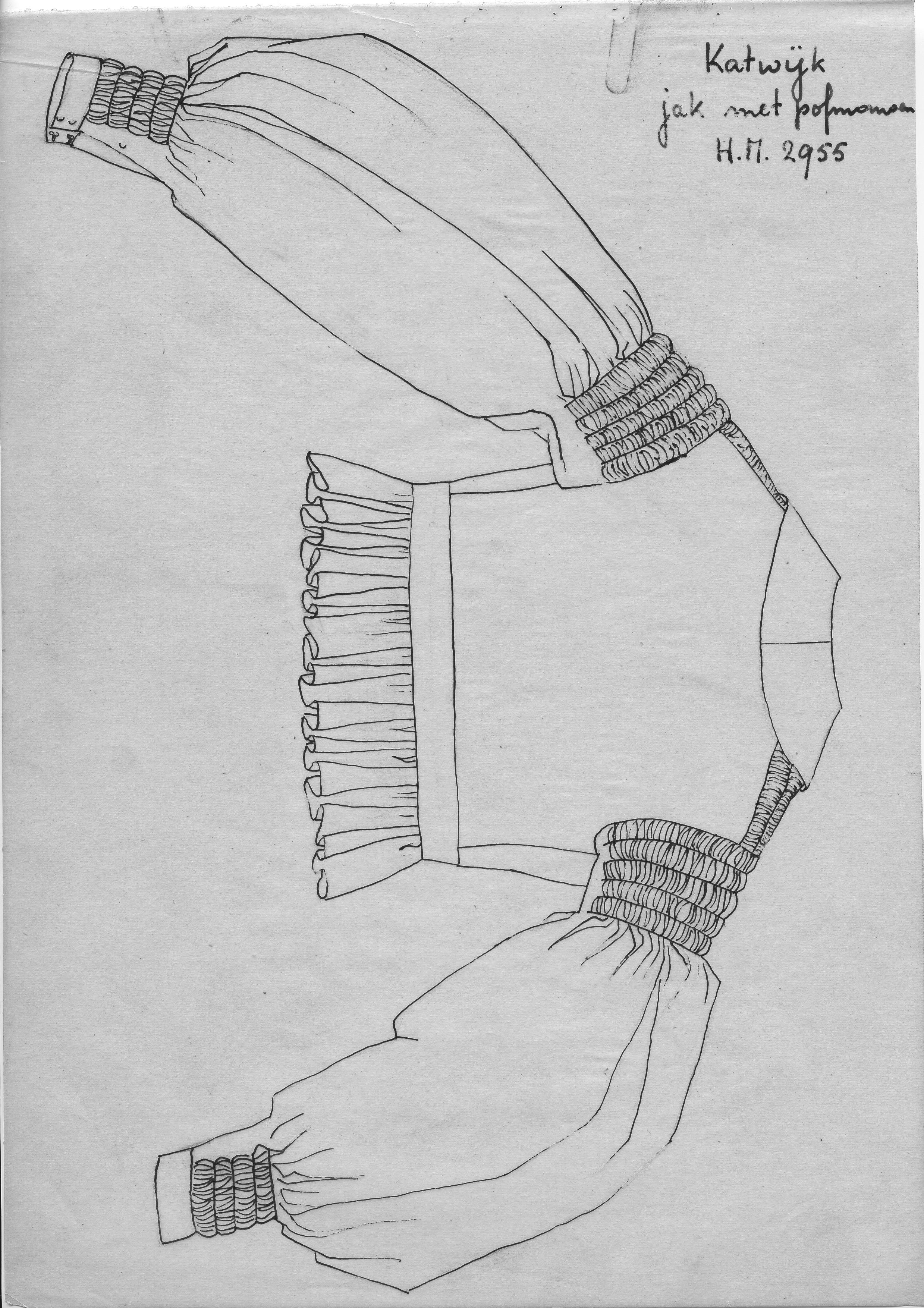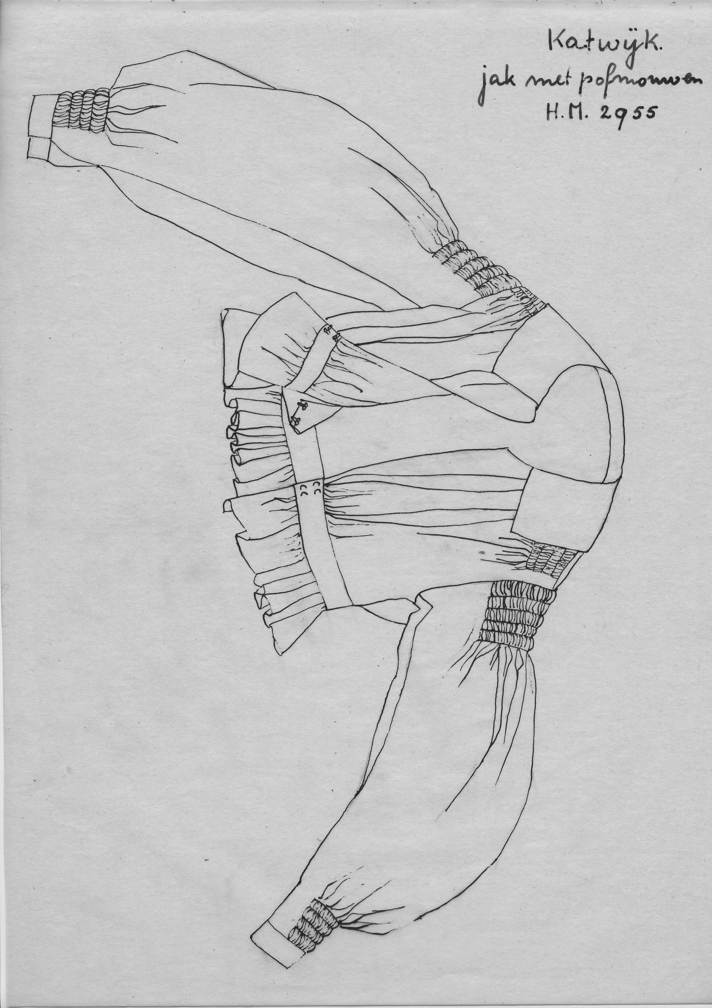 Tekening van een jak met pofmouwen, Katwijk (opmetin...